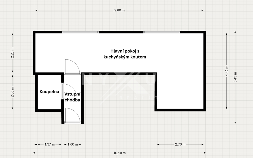 - Dispozice bytu: 1+kk