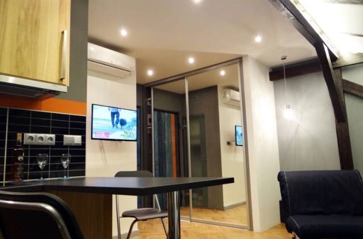 Byt je plně zařízen a vybaven domácími spotřebiči: pračka, kuchyňská linka se vším potřebným pro vaření, rychlovarná konvice, manželská postel, rozkládací pohovka, 2 skládací židle. V bytě je také výtah a klimatizace.