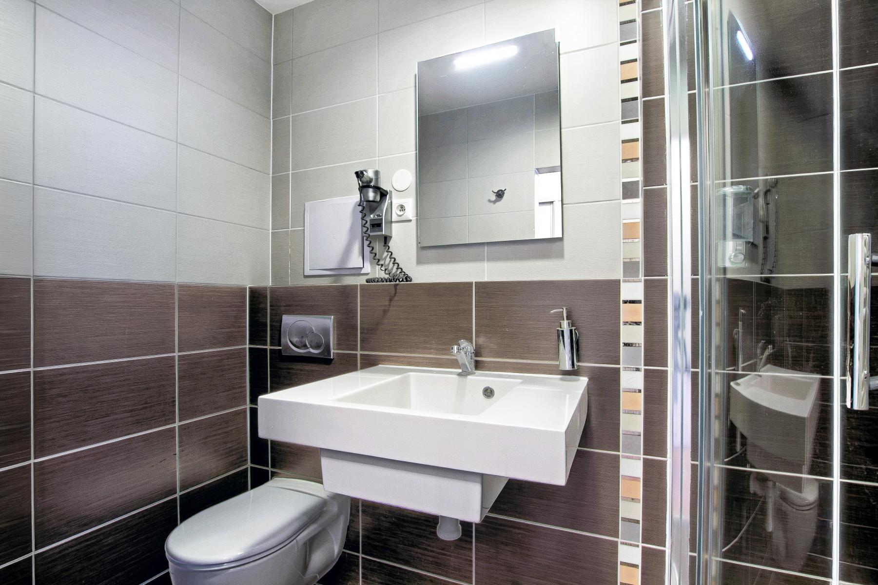 Praktická předsíň je vybavená velkou skříní. Koupelna se sprchovým koutem, keramické umyvadlo, toaleta a fén.