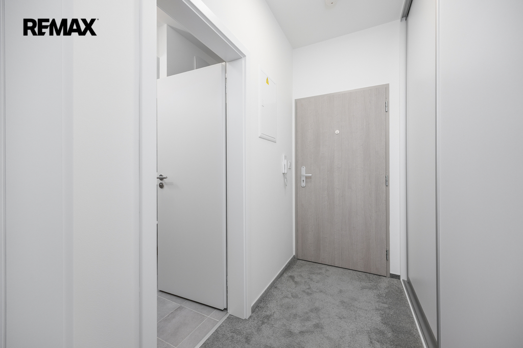 V předsíni se nachází vestavěná šatní skříň, která poskytuje dostatek úložného prostoru pro dvě osoby.