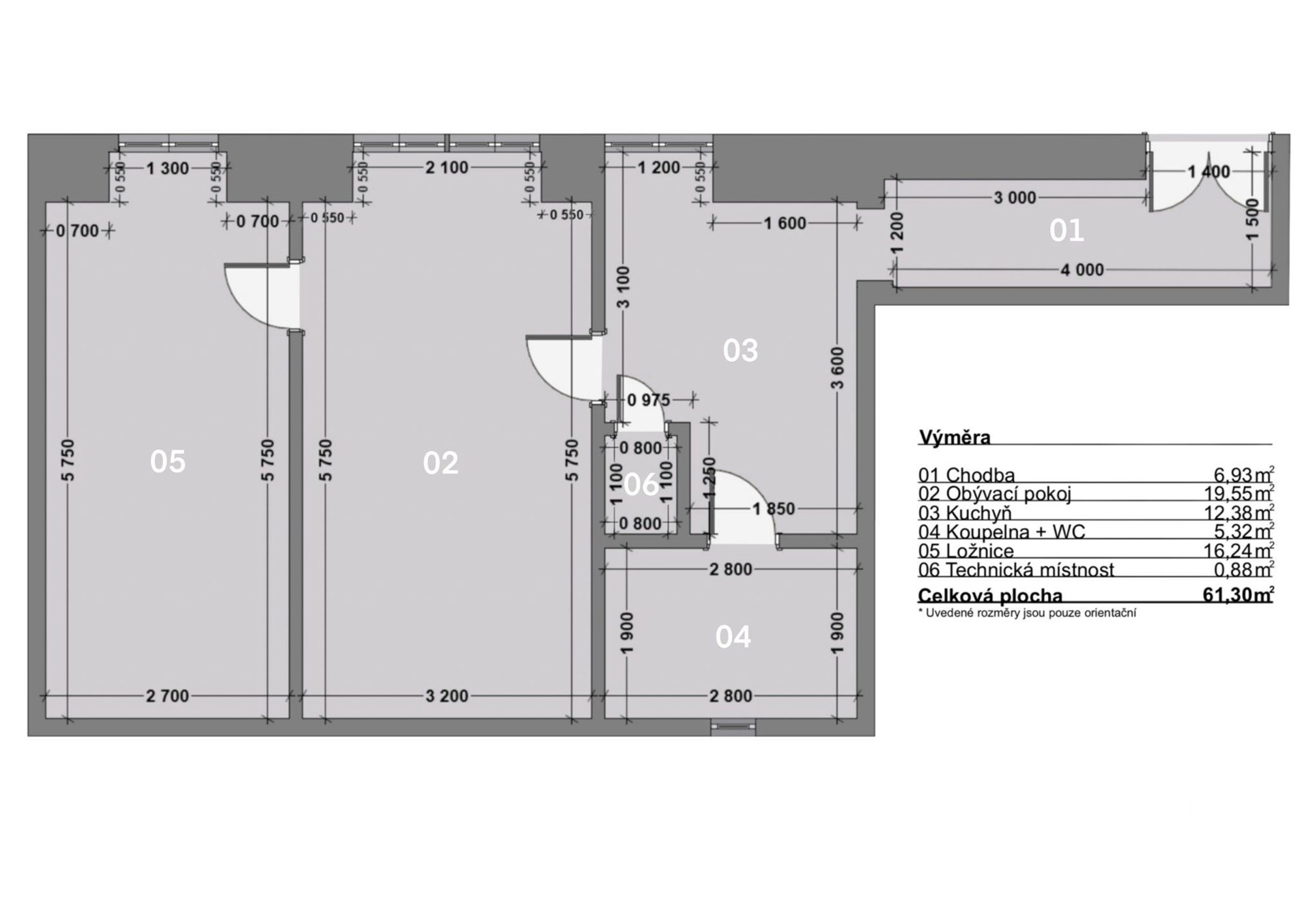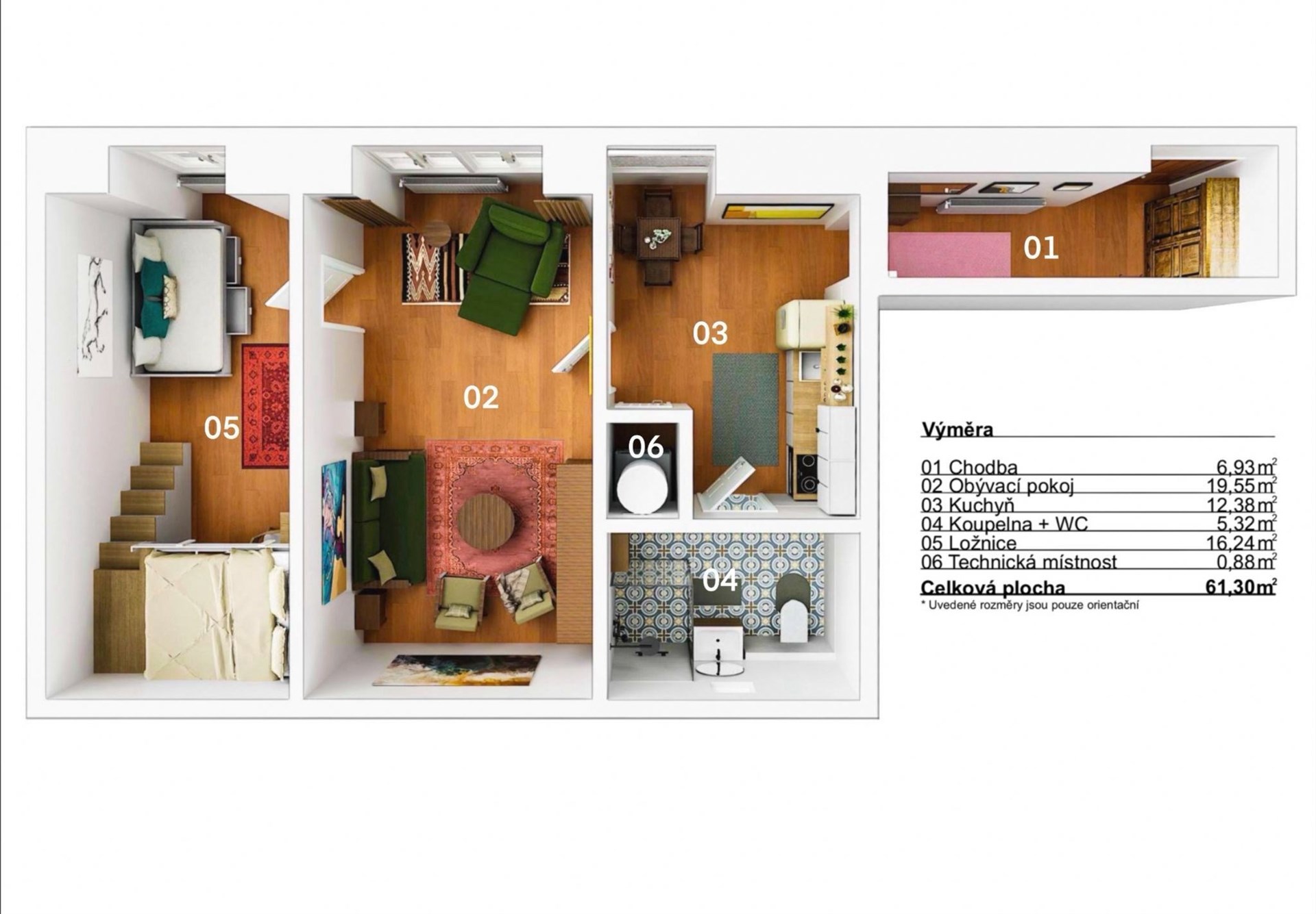 | Dispozice/podlahová plocha: | 2+1/61 m² |