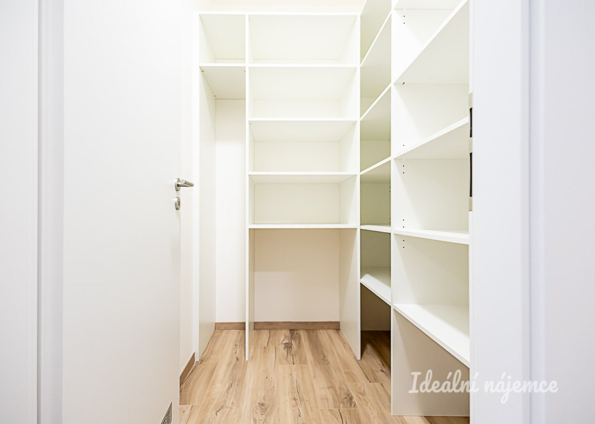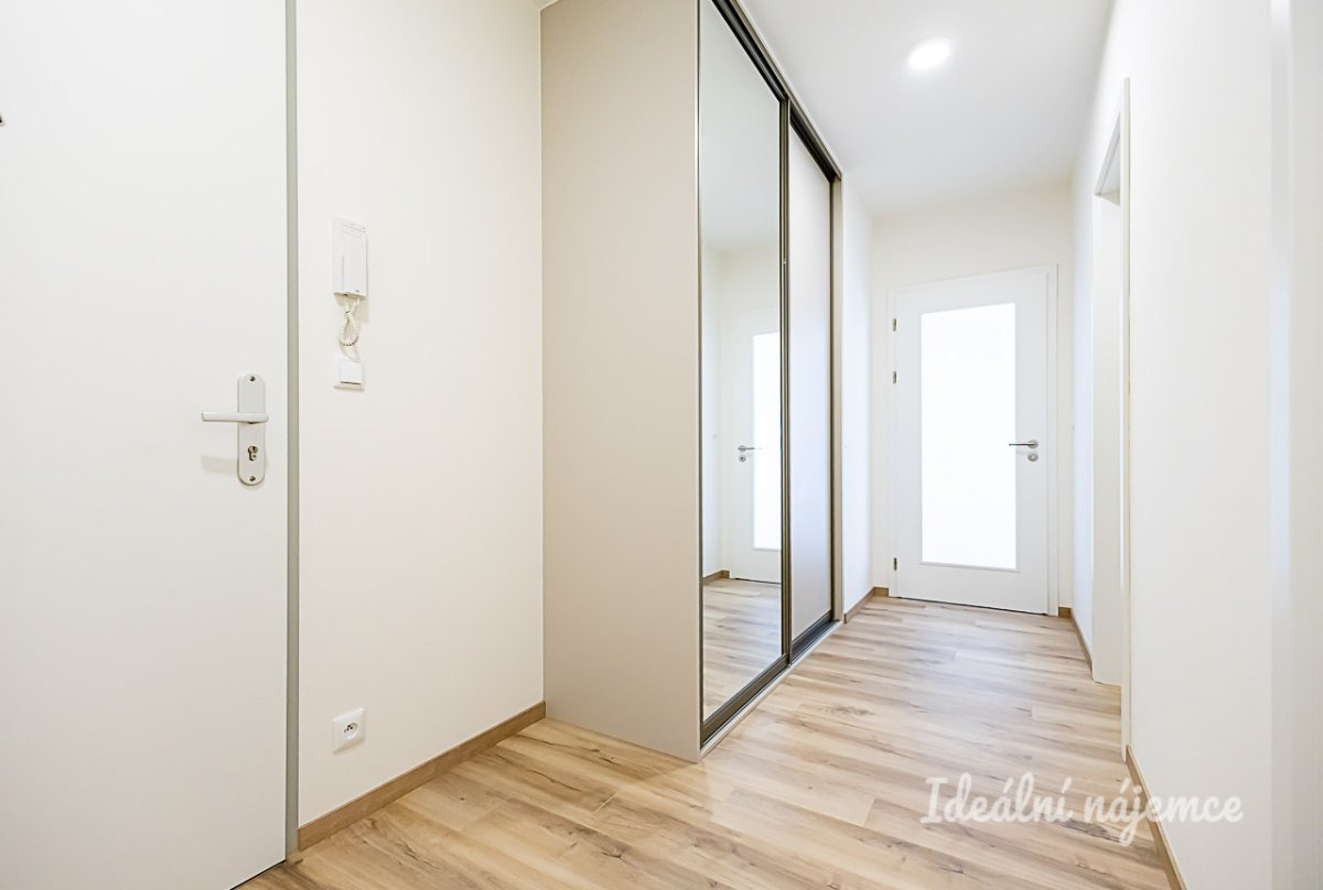 Byt se nabízí skvělou možnost pro vytvoření domova a nabízí se nevybavený. Dispozičně byt nabízí velmi prostornou předsíň a šatník, který obsahuje spoustu úložných polic. Na chodbě se také nachází vestavěná skříň. Kuchyňská linka je prakticky umístěna v přední části obývacího pokoje a obsahuje všechny potřebné spotřebiče včetně myčky. Dále pak byt nabízí prostornou ložnici, která také nabízí vestavěný úložný prostor.