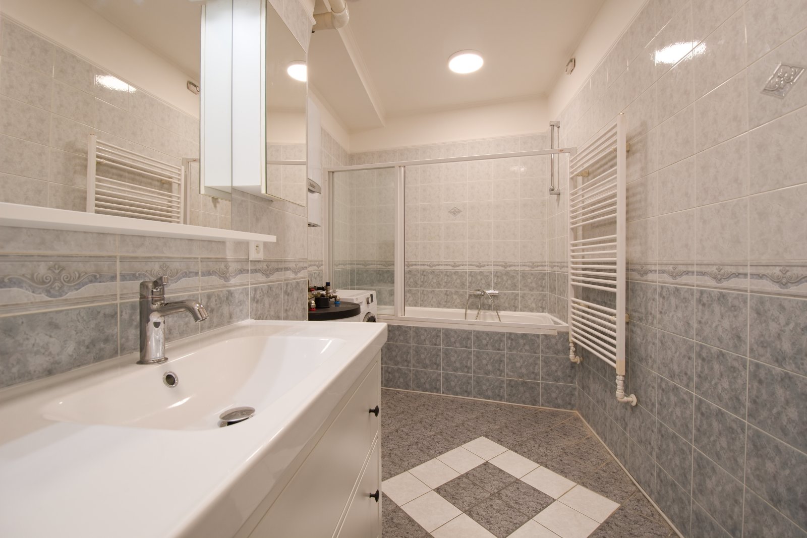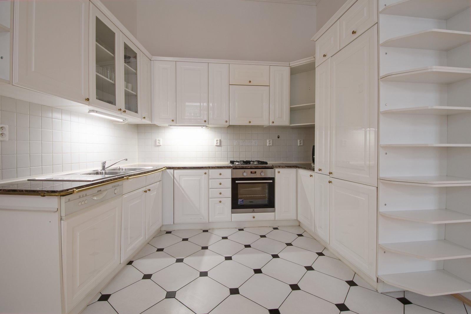 Součástí vybavení je pračka, plynový kotel a vestavěná skříň. Kuchyň je plně vybavena spotřebiči - varná deska, trouba, myčka nádobí a lednice s mrazákem. Na podlahách jsou kvalitní dřevěné parkety a dlažba.