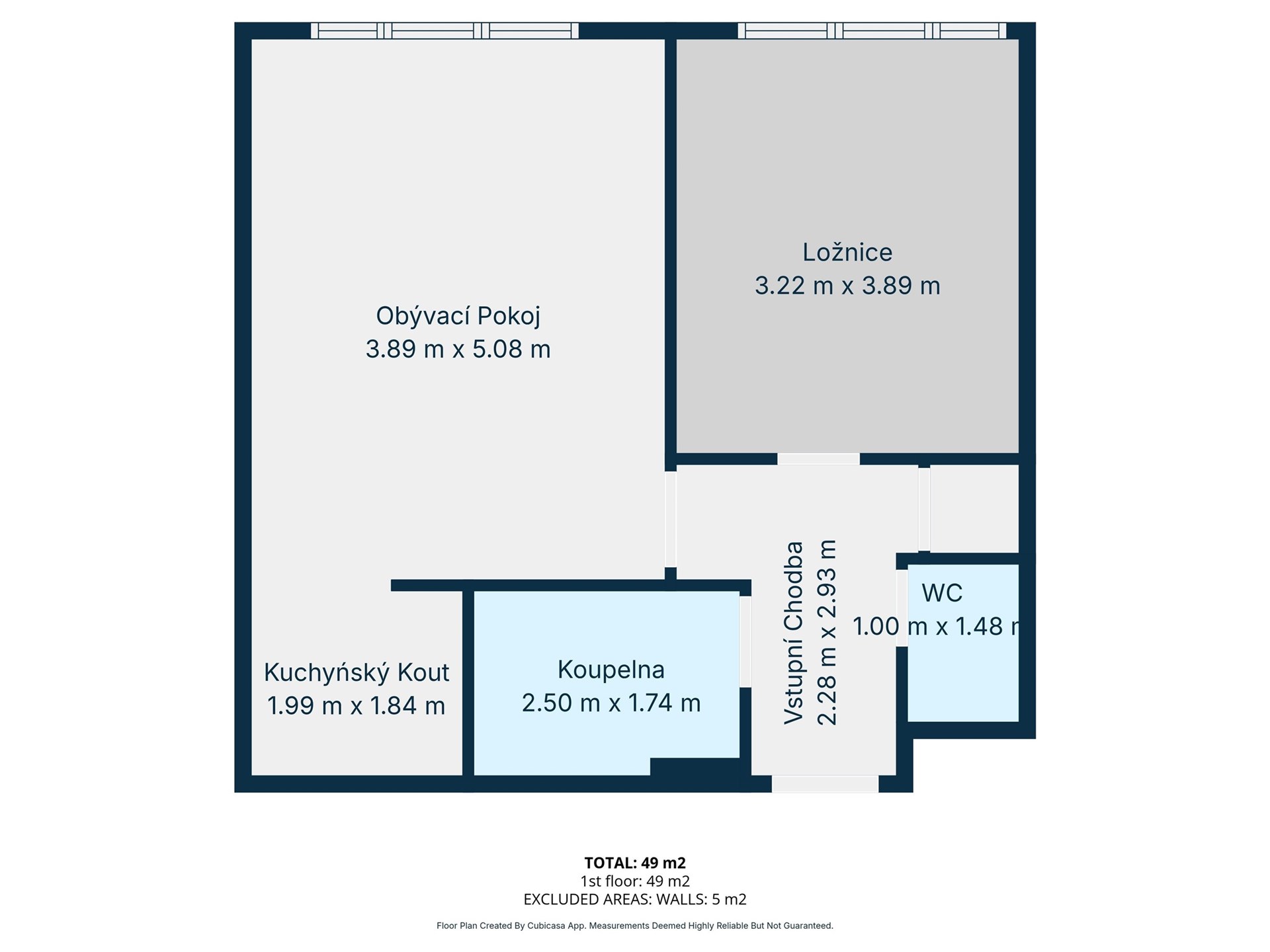 - Celková podlahová plocha: 55 m²