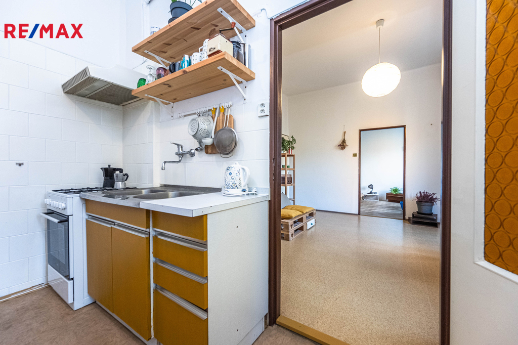 Byt se nachází v 5. NP bytového domu s výtahem a má okna do klidného vnitrobloku – takže Vás tu nebude rušit městský ruch.