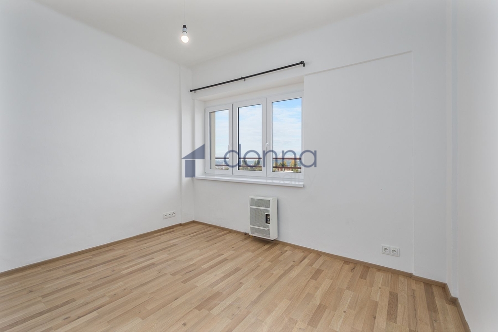 Pronájem pěkného světlého bytu 2+kk, o ploše 47m2 + terasa 11,2m2, umístěný v posledním 8. patře (9.NP) cihlového domu s výtahem a úžasným výhledem, Praha 3, ul. Hartigova.