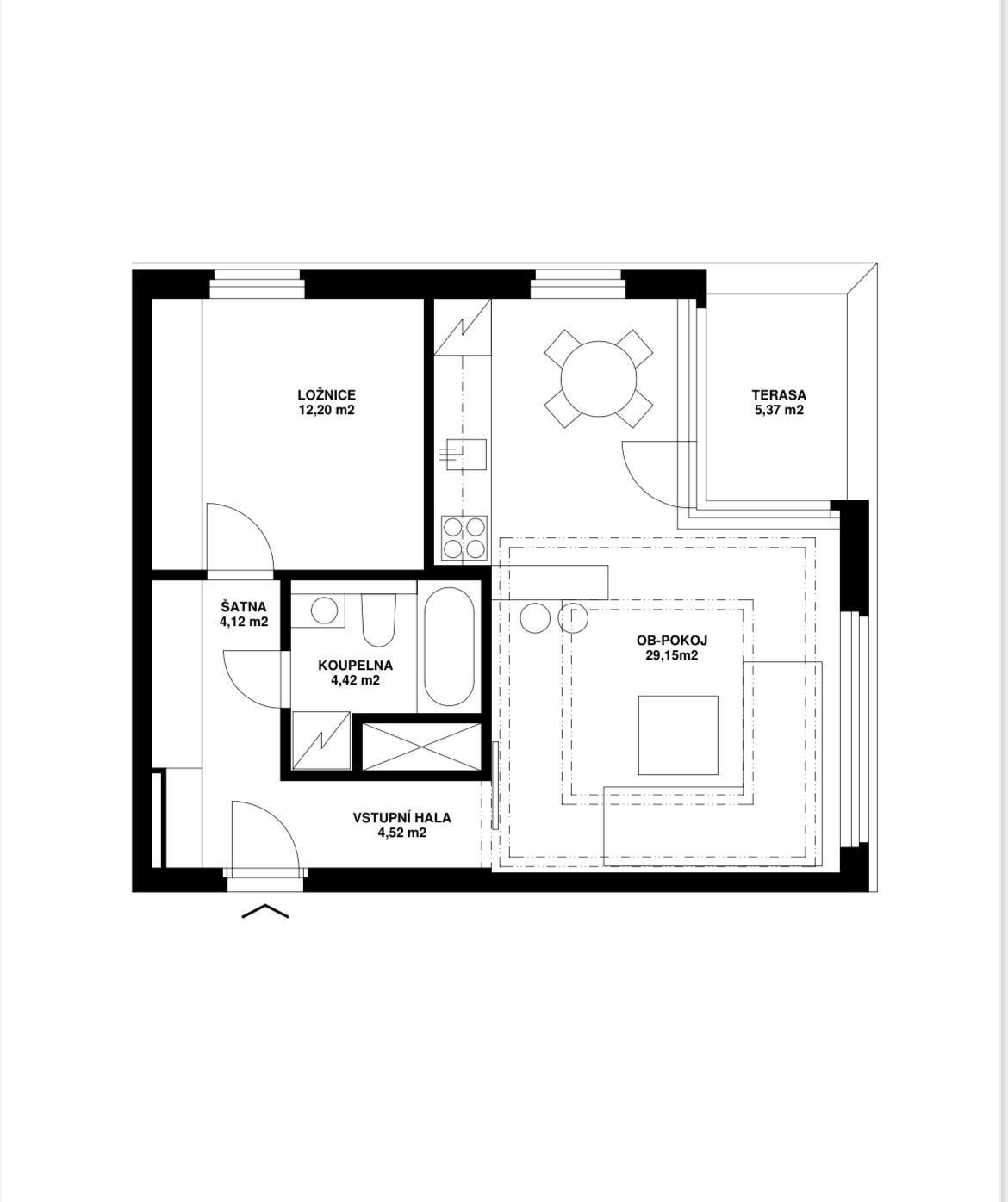 - Dispozice bytu: 2+kk
