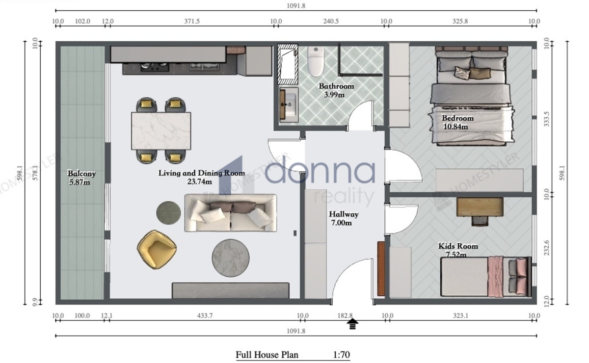 - Celková podlahová plocha: 60 m²