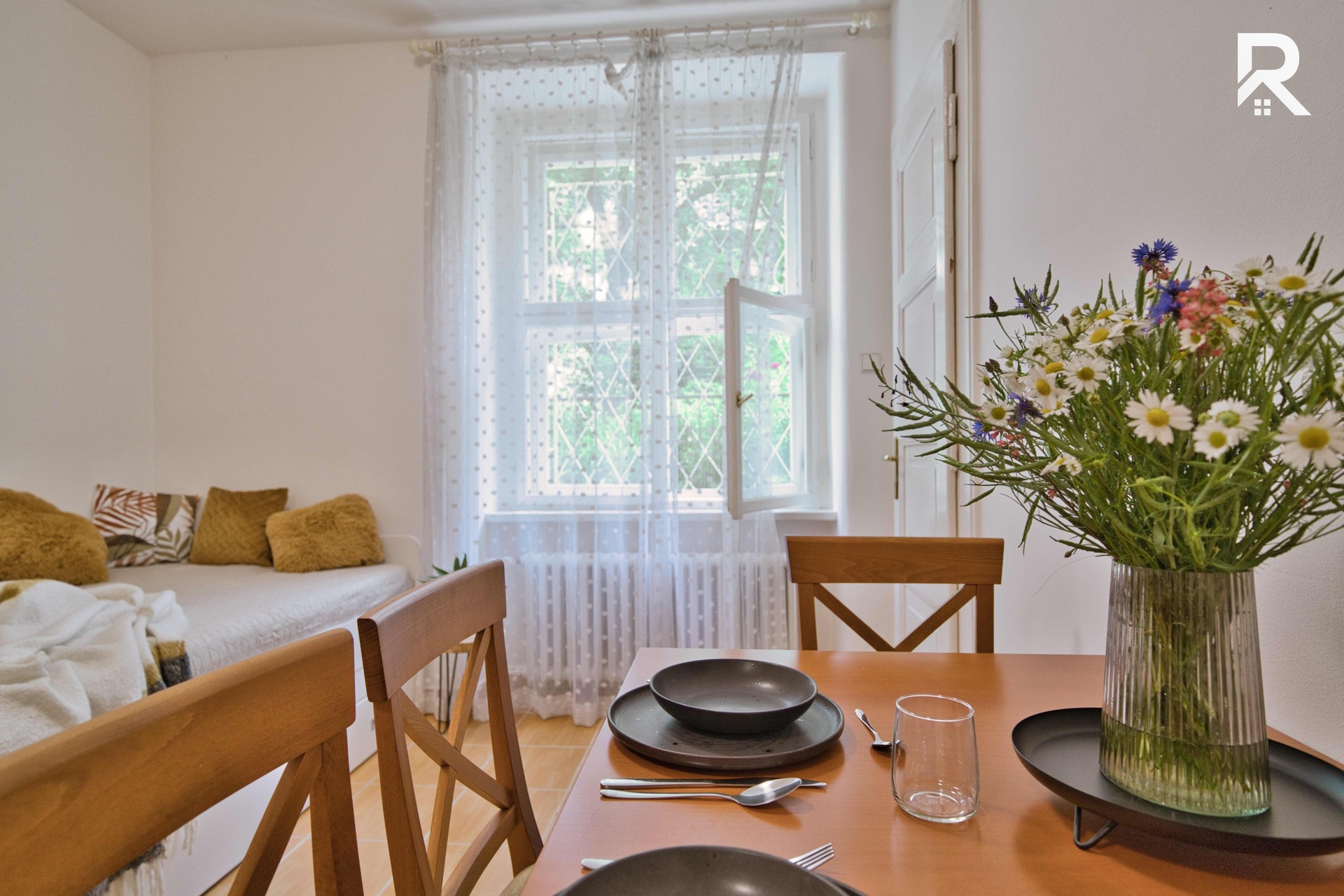 Byt se nachází ve zvýšeném přízemí a už při vstupu vás přivítá prostorná předsíň, která přirozeně propojuje všechny místnosti v bytě. Z ní vstoupíte do kuchyně s obytným prostorem s kompletně vybavenou linkou včetně spotřebičů, a nechybí ani praktická spíž s lednicí a dostatkem prostoru pro uskladnění potravin. Koupelna a toaleta jsou oddělené – koupelna potěší svojí velikostí i čistým, udržovaným vzhledem.