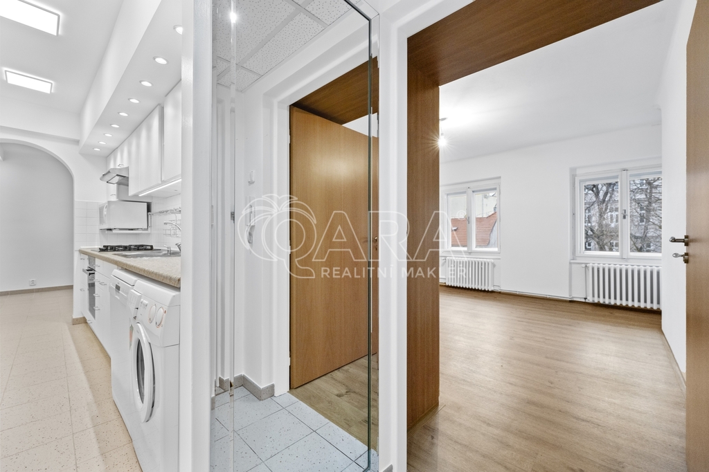 Dispozice bytu nabízí nadstandardní flexibilitu a je vhodná i pro dvougenerační bydlení. V případě zájmu je možné jednotku rozdělit na dvě samostatné části a do jedné z místností s koupelnou doplnit kuchyňskou linku, čímž vznikne ideální řešení pro vícečlennou rodinu nebo kombinaci bydlení a práce.