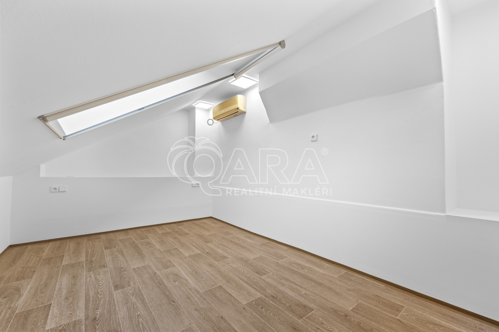 Další dva menší pokoje jsou ideální jako ložnice, dětský pokoj, pracovna či pokoj pro hosty, přičemž jeden z nich nabízí praktický úložný prostor v podobě patra. K jedné z ložnic náleží také samostatná šatna.Byt disponuje dvěma koupelnami vybavenými vanou, sprchovým koutem a toaletou, dále je k dispozici samostatná toaleta. Pračka je součástí vybavení.