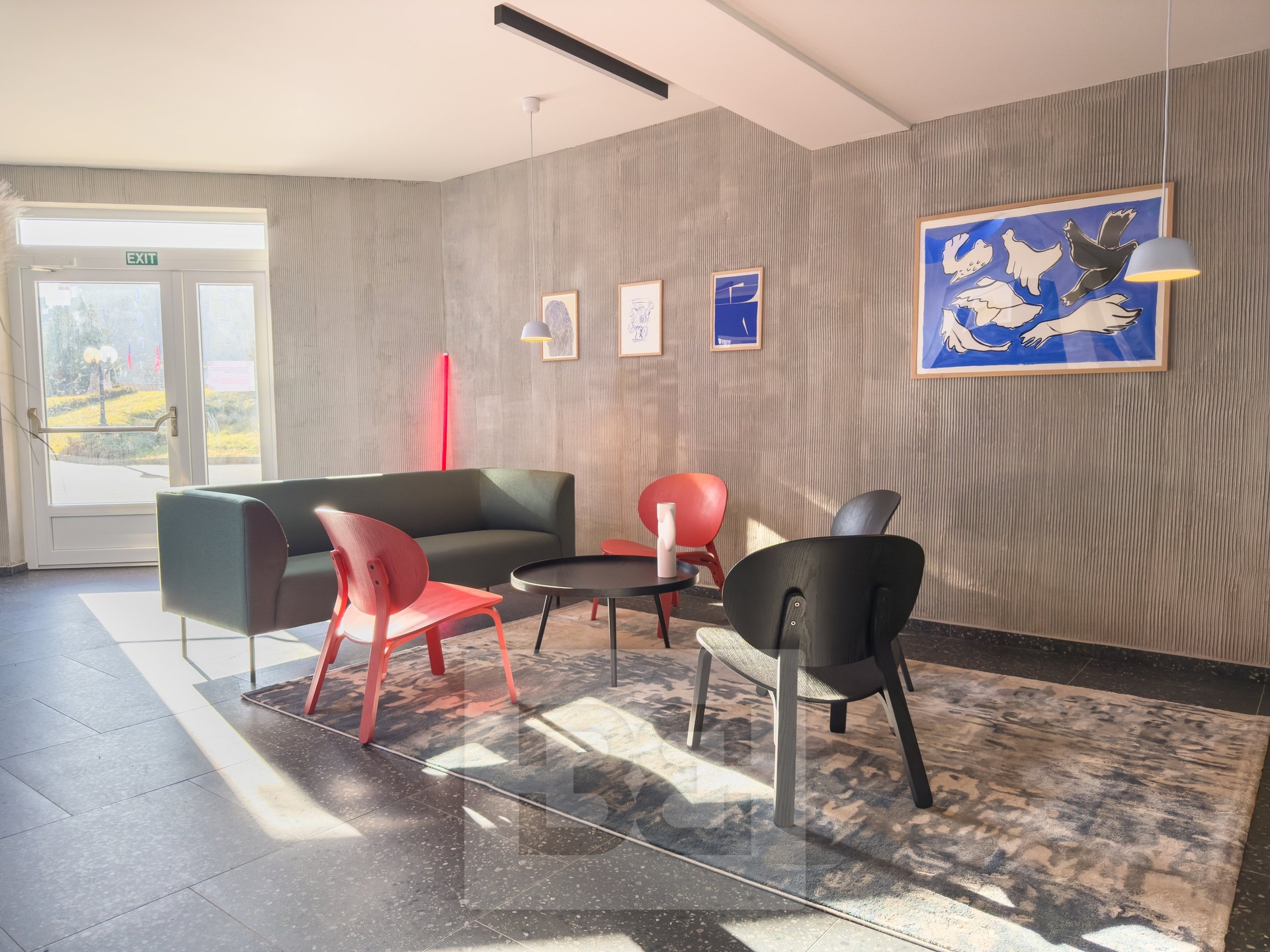 Velkou předností budovy je recepce, vlastní fitness k využití zdarma a další společenské místnosti pro trávení času včetně střešní terasy s grilem.