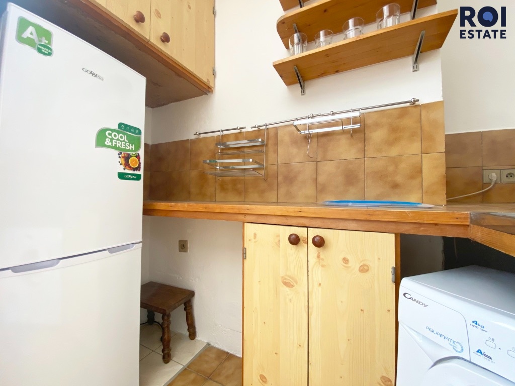 Jedná se o částečně zařízené bydlení se skříní, pračkou a lednicí.