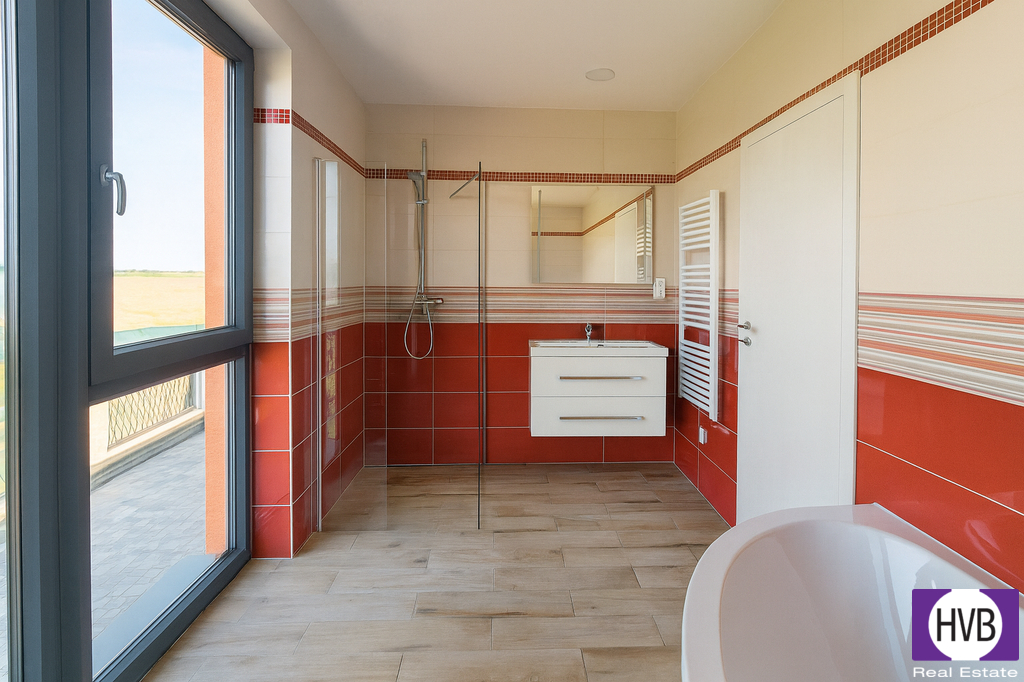 Nabízíme na pronájem prostorný rodinný dům 5+kk o obytné ploše cca 180 m2 + 20 m2 zimní zahrada a pozemek o výměře 1324 m2 v lokalitě Praha 10 - Křeslice. V přízemí domu se nachází vstupní hala s vestavěnou skříní, koupelna se sprchovým koutem a WC, prostorný obývací pokoj s kuchyňským koutem a přímým vstupem na zimní zahradu (není na fotkách - čerstvě dodělaná), která zvětšuje plochu a komfort obývacího pokoje, dále se v přízemí nachází pracovna / ložnice. V prvním patře naleznete koupelnu s vanou, sprchovým koutem a WC, spíž, tři ložnice, z nichž jedna disponuje velkou šatnou a vstupem na vlastní terasu. Všechny ložnice mají velká okna s výhledem do zahrady a na okolní přírodu. Dům je postaven ve vysokém standardu a nabízí venkovní bezpečnostní žaluzie, klimatizaci, krb v obývacím pokoji, zabezpečovací systém (senzory, kamery, atd.) a mnohem více. Celá zahrada je pečlivě upravená. Na zahradě je zděný zahradní domek. V okolí se nachází veškerá občanská a kulturní vybavenost a dům má dobrou dopravní dostupnost. V případě zájmu či dotazů neváhejte kontaktovat makléře i o víkendech.