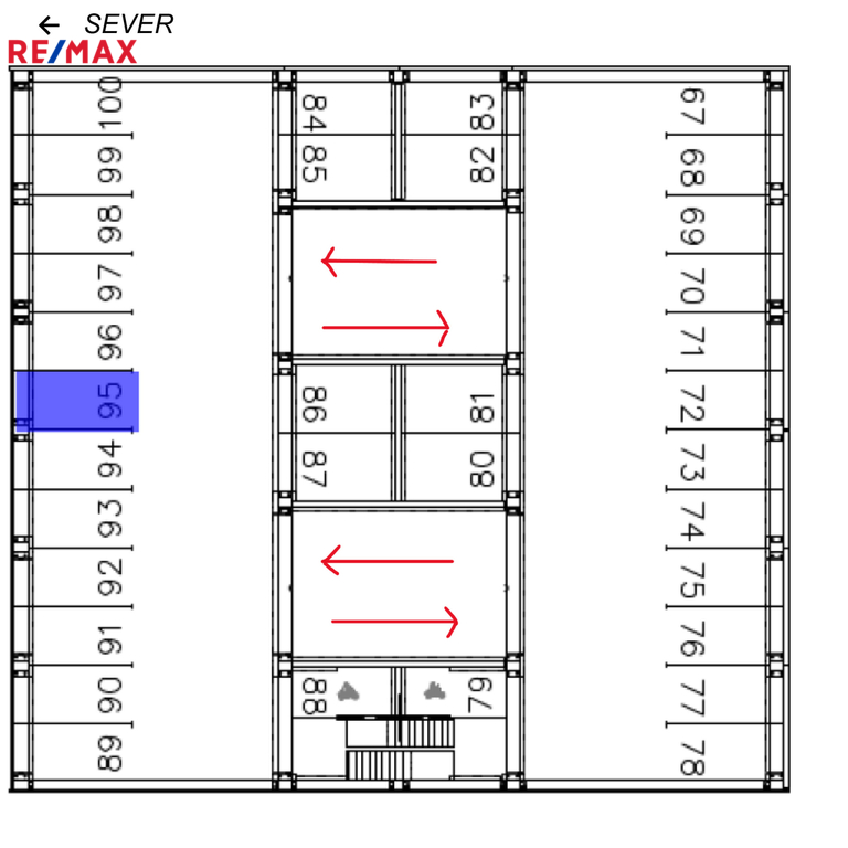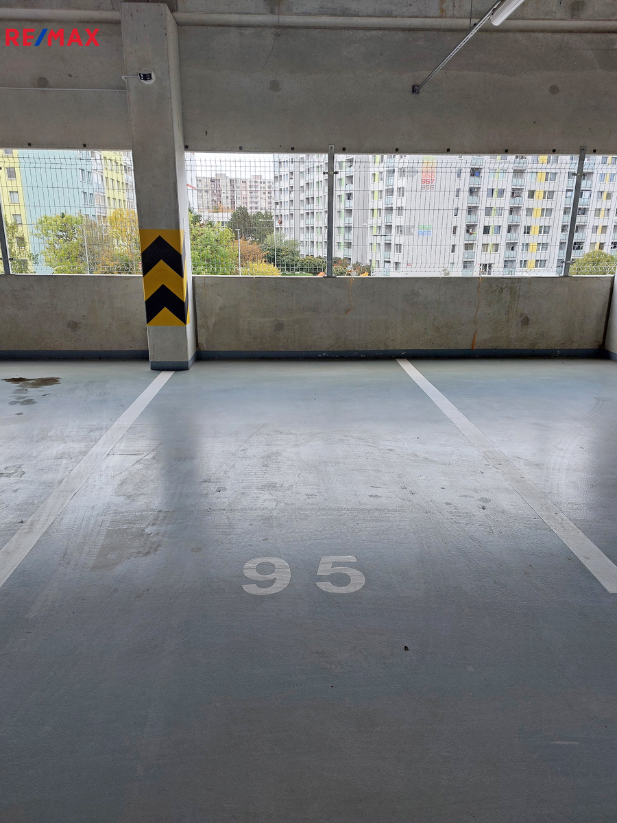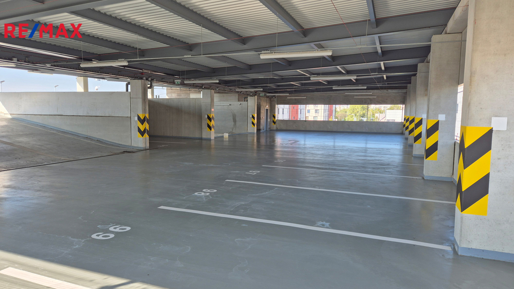Garážové parkovací stání v osobním vlastnictví, o výměře 12,5 m² a rozměrech 2,5 x 5 m, se nachází v 3. nadzemním podlaží budovy. Vjezd do garáže je zajištěn automatickými vraty na dálkové ovládání, otevírání vrat pomocí čipu či telefonu. Prostor je čistý, suchý, dobře osvětlený a po celou dobu je monitorován kamerovým systémem se záznamem. Vjezd je pohodlný i pro nižší auta, maximální vjezdová výška jsou 2 metry. Do oken budovy budou nyní instalovány plachty chránící vnitřní část parkovacího domu před deštěm. Jedná se o dočasné řešení a v r. 2026 je plánovaná montáž venkovních žaluzií. Do parkovacího domu je zákaz vjezdu a parkování vozidel s pohonem na LPG či CNG, dále není přizpůsobeno pro elektro mobily.