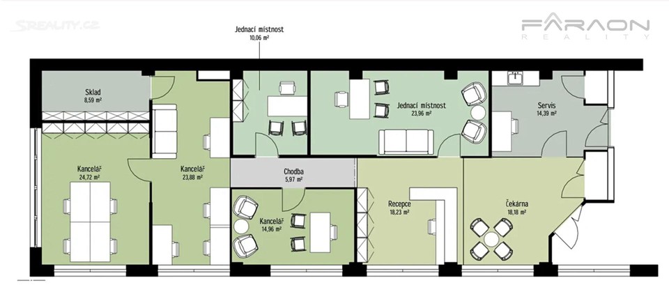 - Plocha kanceláří: 194 m²