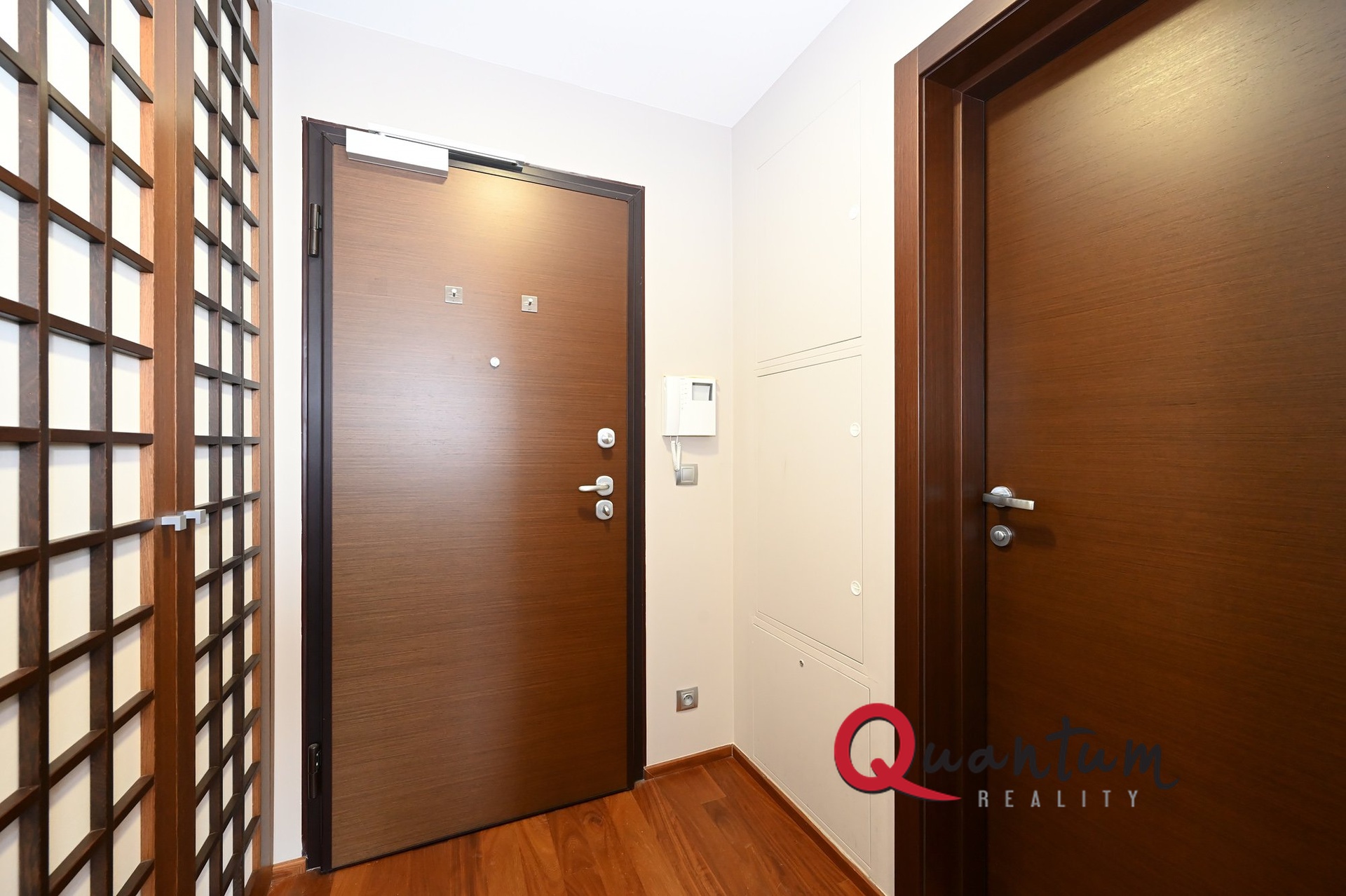 Byt je navržen s důrazem na detail, praktičnost a čistý moderní design. Dispozice sestává ze vstupní chodby s vestavěnými designovými šatními skříněmi, které nabízejí dostatek úložného prostoru. Koupelna je vybavena sprchovým koutem walk-in, toaletou a s umyvadlem v elegantním provedení.