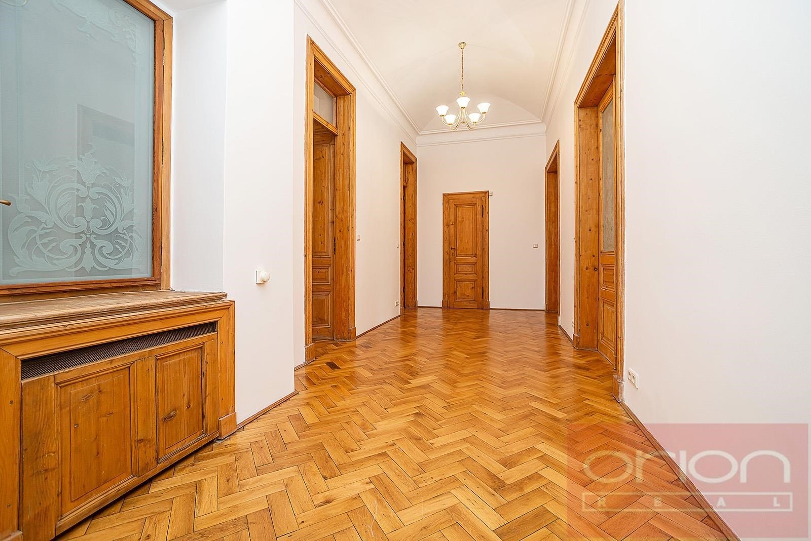 Nabízíme k pronájmu atypický luxusní byt 5+1 ve 4. patře secesního domu s výtahem, který se nachází v atraktivní rezidenční čtvrti Prahy 2 - Vinohrady naproti budově Vinohradského divadla, jen pár metrů od Náměstí Míru. Plně zařízený byt s celkovou plochou 171 m² nabízí vstupní halu, prostorný obývací pokoj se vstupem na balkon, kompletně vybavenou kuchyň, jídelnu, 3 ložnice, 2 koupelny (jednu s vanou a jednu se sprchou + toaletou), samostatnou toaletu a technickou místnost s pračkou a sušičkou. K vybavení bytu patří dřevěné parkety a mramorové obklady v koupelnách, internet, satelit. Lokalita s výbornou dopravní dostupnosí, občanskou vybaveností, v blízkém okolí je množství restaurací, kaváren, bister, obchodů a dalších služeb. Pár kroků od domu jsou stanice tramvají, autobusů a metra. Václavské náměstí či park Riegrovy sady jsou jen několik minut chůze od domu. Nájemné 5500 EUR měsíčně, možnost pronájmu parkovacího stání v podzemní garáži za extra 200 Eur za měsíc.