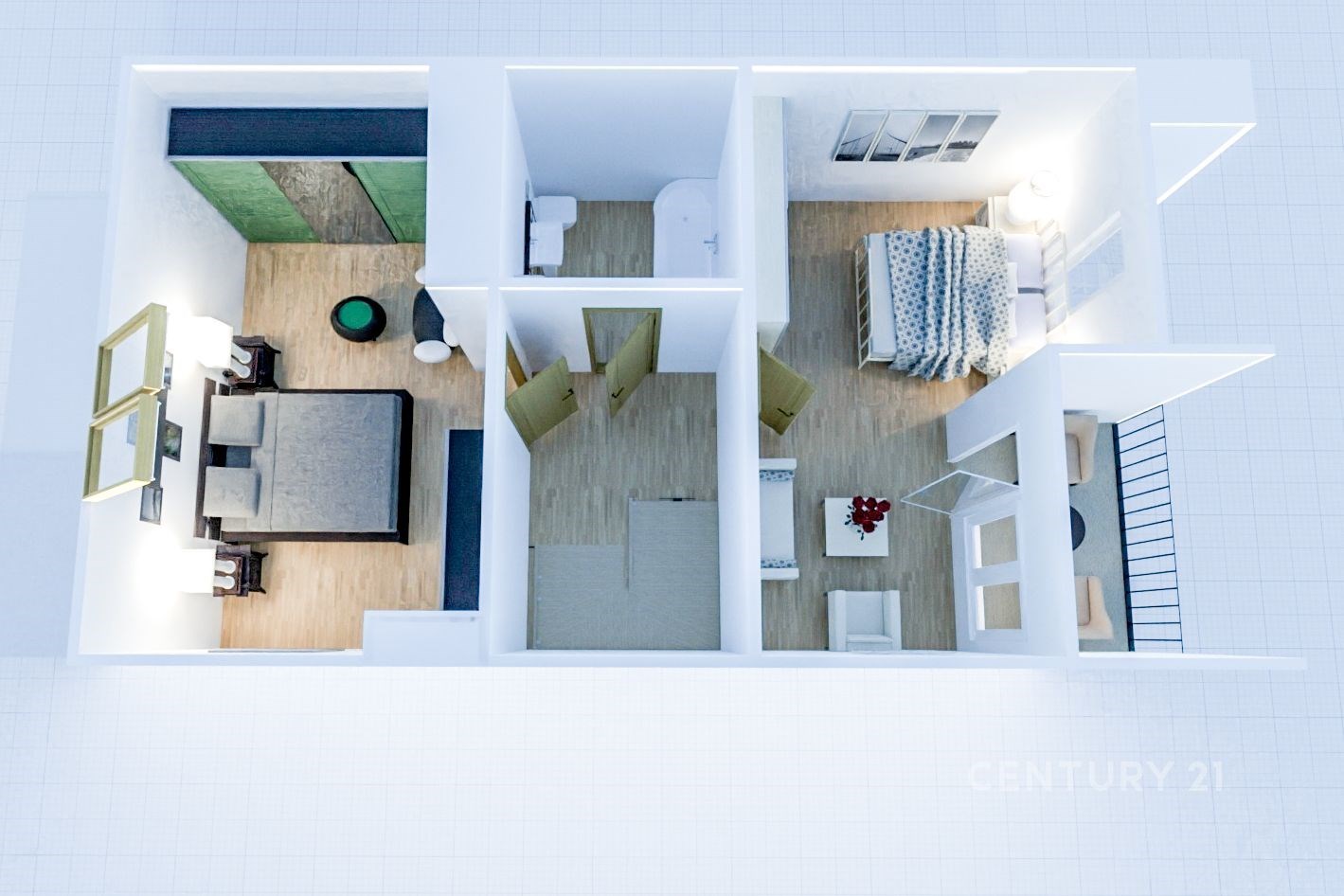 Spodní patro s dřevěnými stropy patří společným chvílím – prosvětlený obývací pokoj s kuchyní volně přechází v místo pro setkávání, zatímco ložnice v patře a přízemí zaručují klid. Výhled na dynamické Holešovice a blízkosti vyhlášených míst, jako je protější SOHO, dělají z tohoto bytu adresu, kterou si zamilujete.