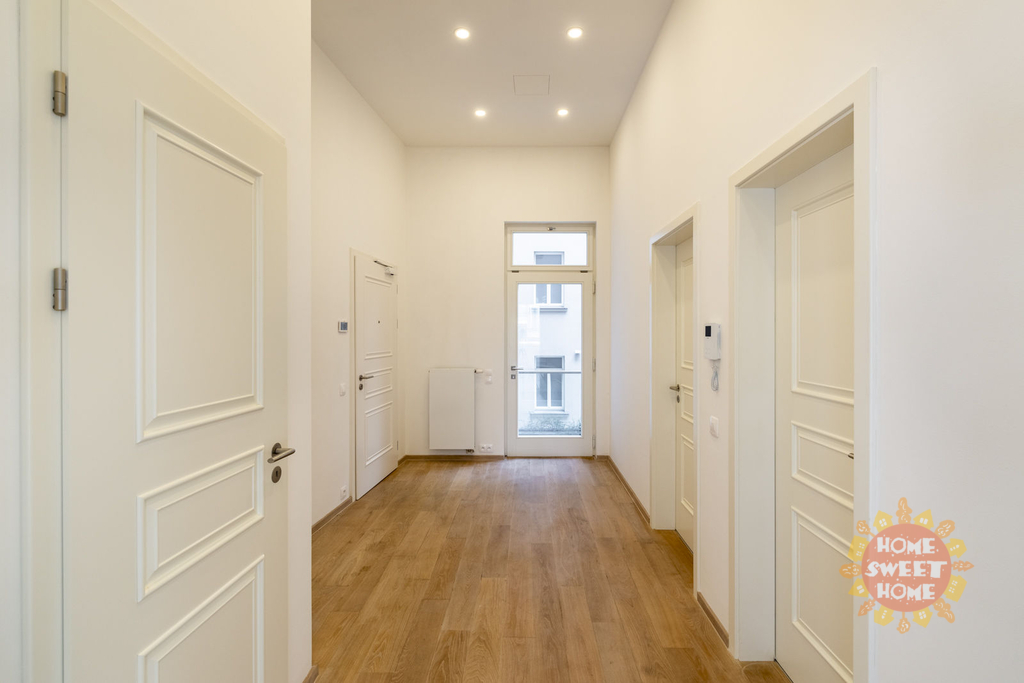 Nabízíme k pronájmu světlý moderní byt 3+kk o výměře 102 m2 s terasou do vnitrobloku o výměře 22 m2.