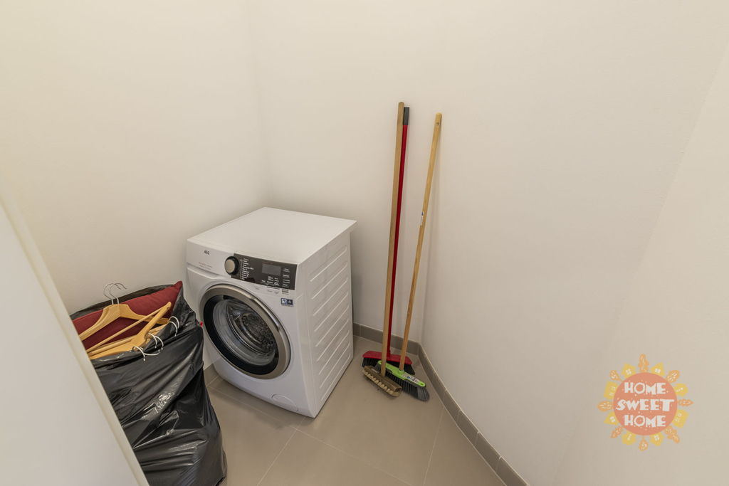 Dispozice bytu nabízí vstupní chodbu, prostorný obývací pokoj s kuchyňskou linkou vybavená všemi spotřebiči (lednice, sklokeramická deska, el.trouba a myčka ), dvě samostatné ložnice ( jedna ložnice má vlastní koupelnu s vanou, bidetem a toaletou), další koupelna se sprchovým koutem a toaletou, technická místnost s pračkou a terasa.