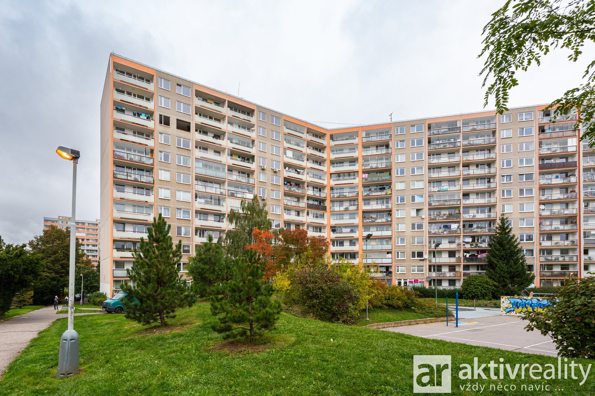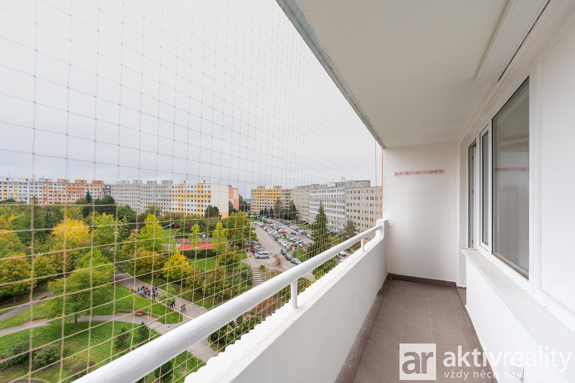Součástí bytu je prostorná lodžie orientovaná do vnitřního bloku sídliště s pěkným výhledem a sklep.