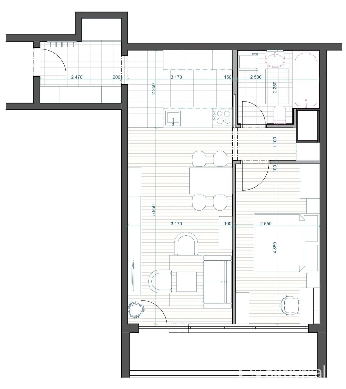 - Dispozice bytu: 2+kk