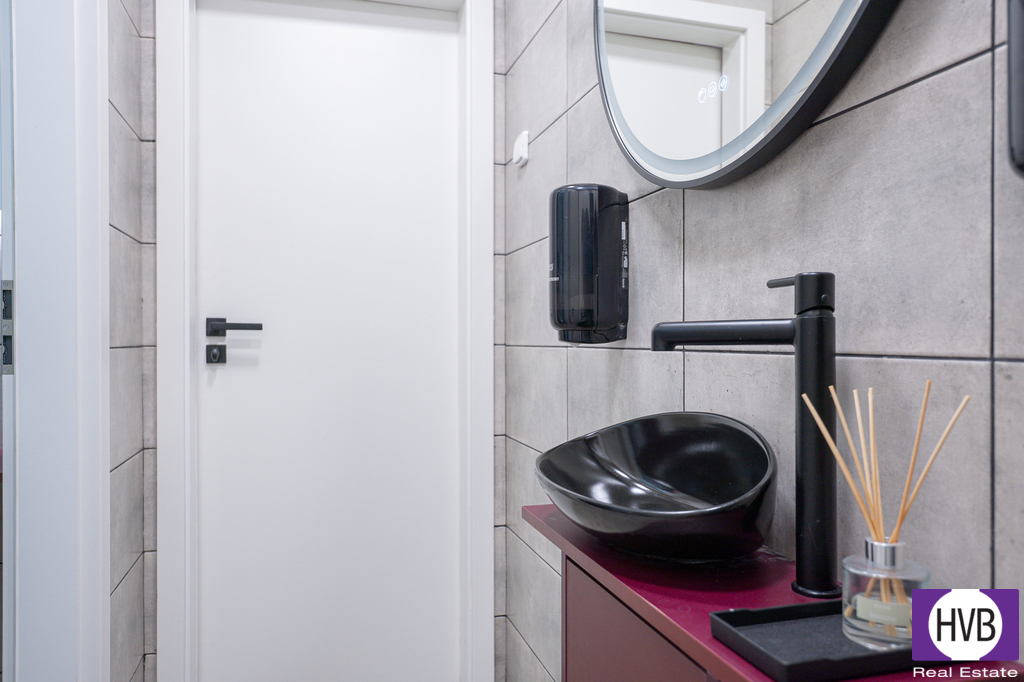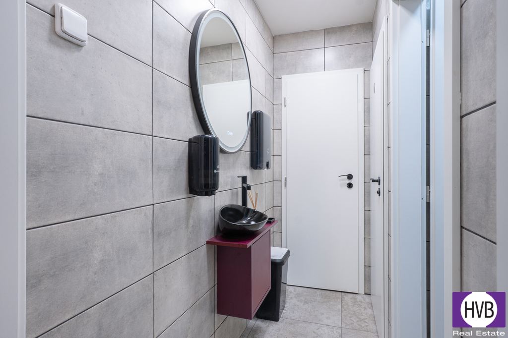 Jednotka je po kompletní rekonstrukci a aktuálně slouží jako bistro. Dispozice zahrnuje otevřený prostor, vybavenou kuchyň, sklad a šatnu. K dispozici jsou 2 toalety pro hosty a 1 pro personál. Prostor je vybaven klimatizací, kamerovým systémem a kvalitní vzduchotechnikou. Součástí je veškeré zařízení. V rámci rekonstrukce byly provedeny nové rozvody vody a elektřiny.