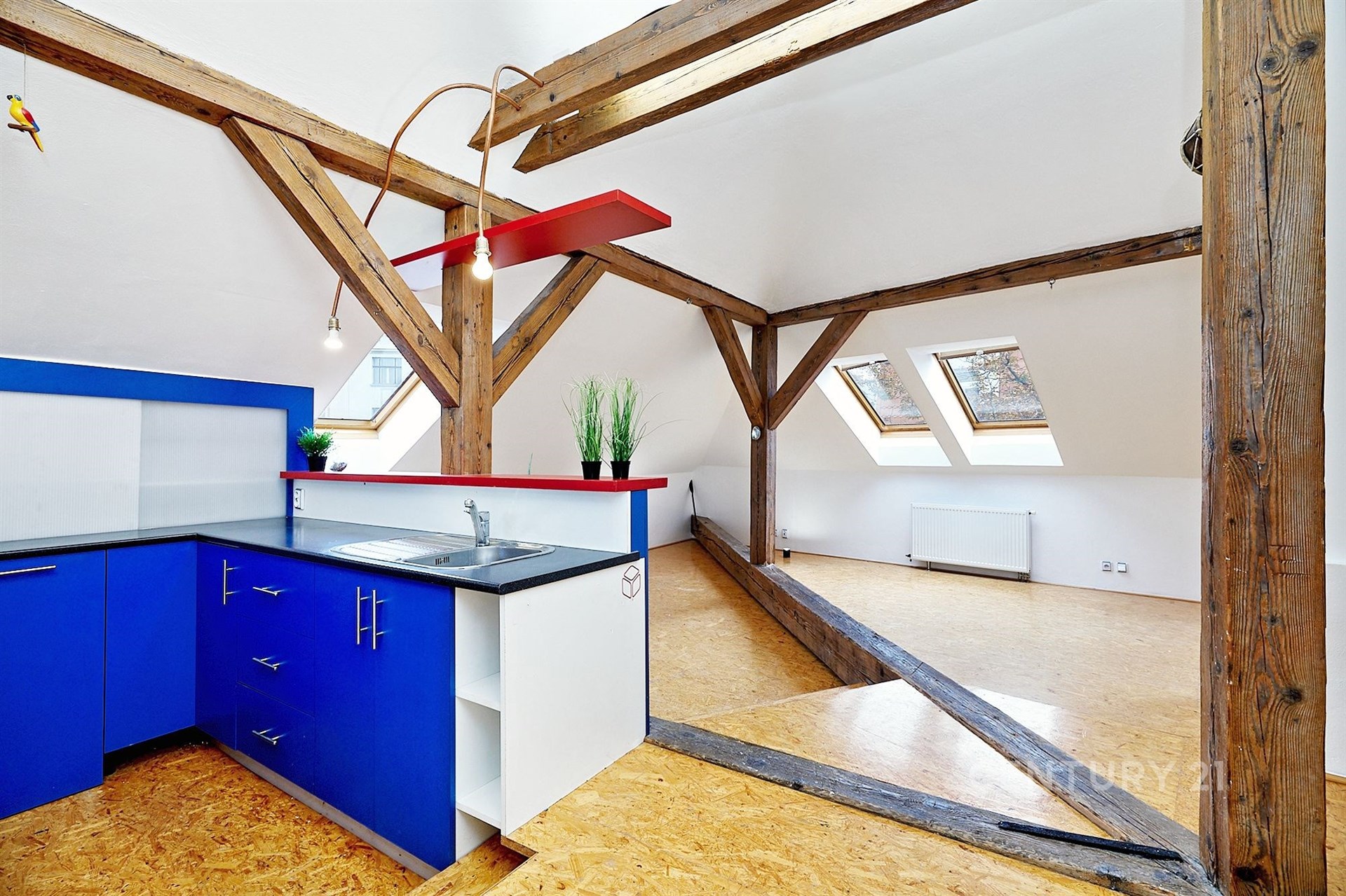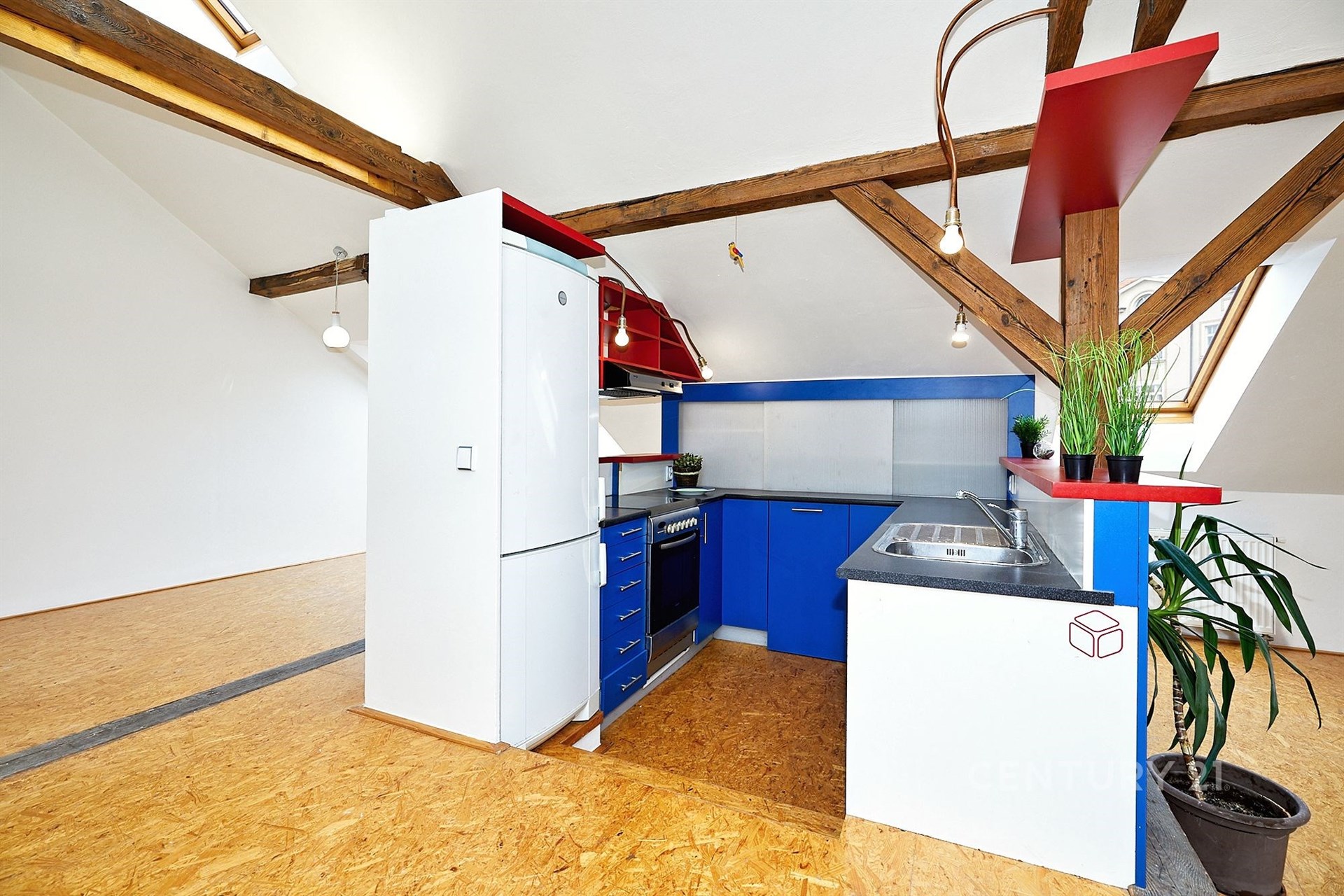 Pronájem podkrovního atypického bytu 3+kk s terasou, Praha Smíchov