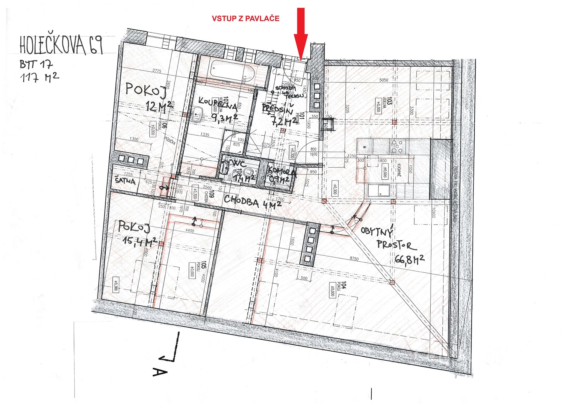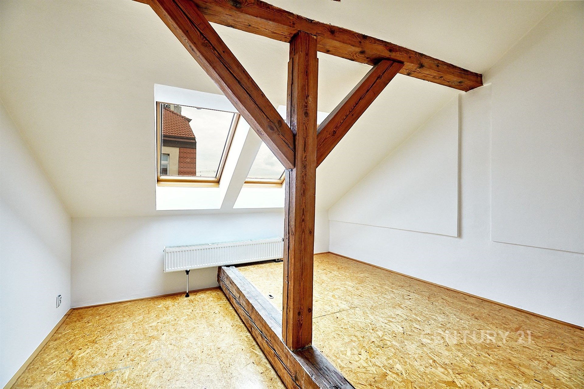 Nabízíme k pronájmu prostorný, slunný půdní byt o rozloze 117 m², situovaný ve 3. patře historického, kompletně zrekonstruovaného domu bez výtahu v ul. Holečkova. Interiér bytu byl navržený architektem a citlivě kombinuje přiznané půdní trámy s moderními prvky a netradičním členěním prostoru.