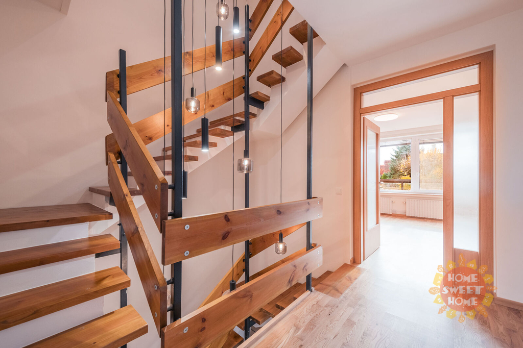 Interiér domu je řešen s důrazem na rodinnou atmosféru. Disponuje čtyřmi samostatnými ložnicemi, které poskytují soukromí pro děti i rodiče. Dále se v domě nacházejí tři koupelny s WC, což usnadňuje každodenní život velké rodiny. Vytápění je zajištěno elektrickým kotlem a radiátory, takže celé bydlení je příjemně vytápěné i v chladnějších měsících.