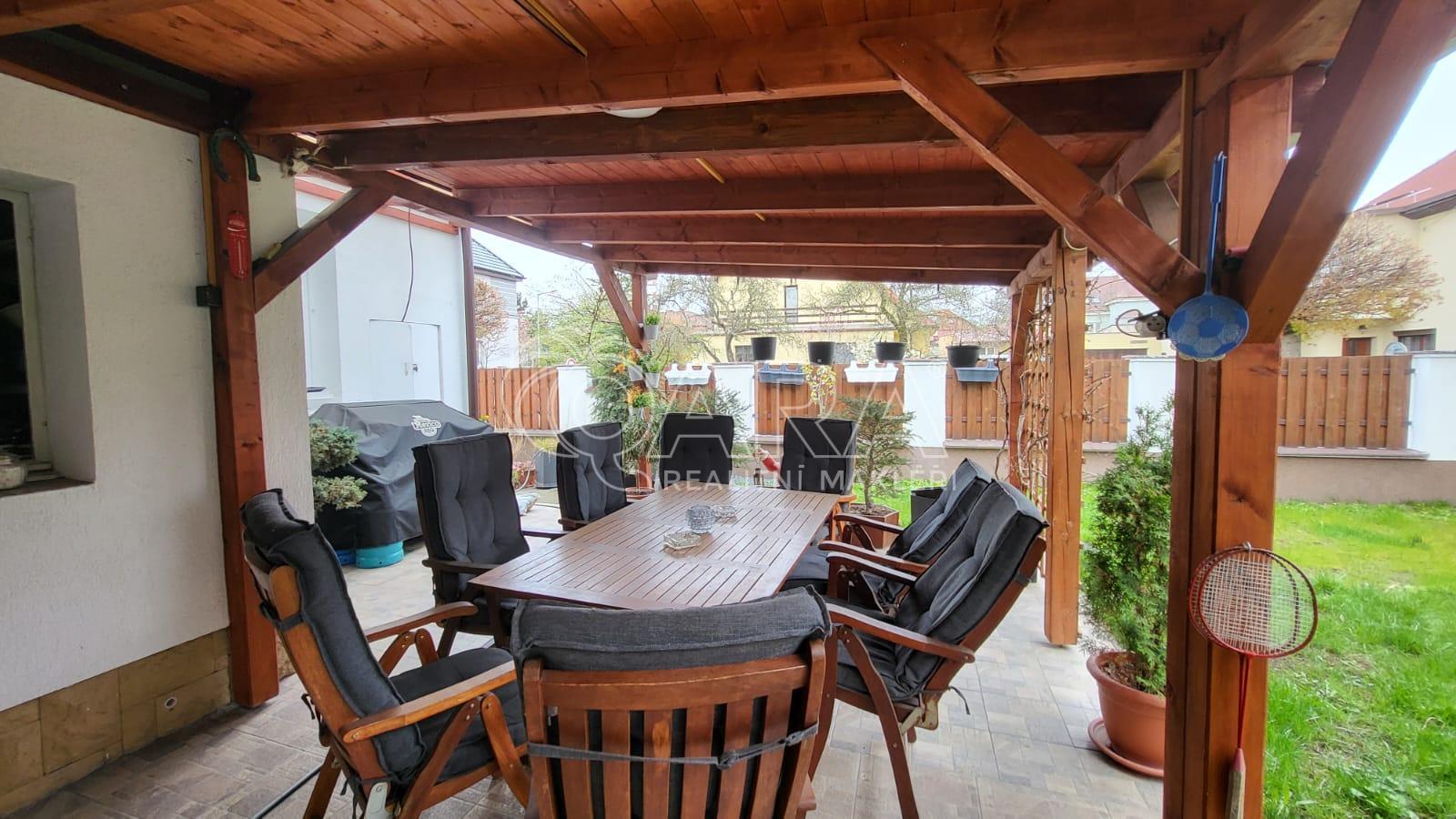 K domu náleží terasa o velikosti 15 m and sup2; ideální pro relaxaci. Po dohodě s majiteli je možné využívat také zahradu s posezením.