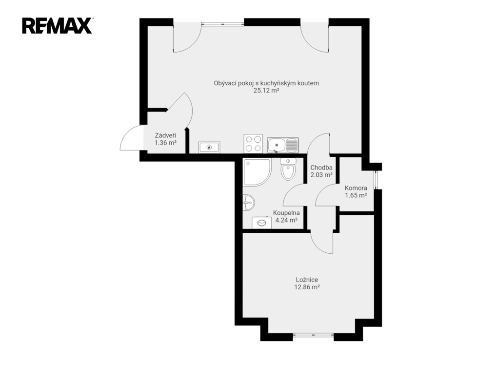 | Dispozice/podlahová plocha: | 2+kk/47 m² |
