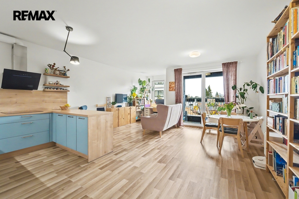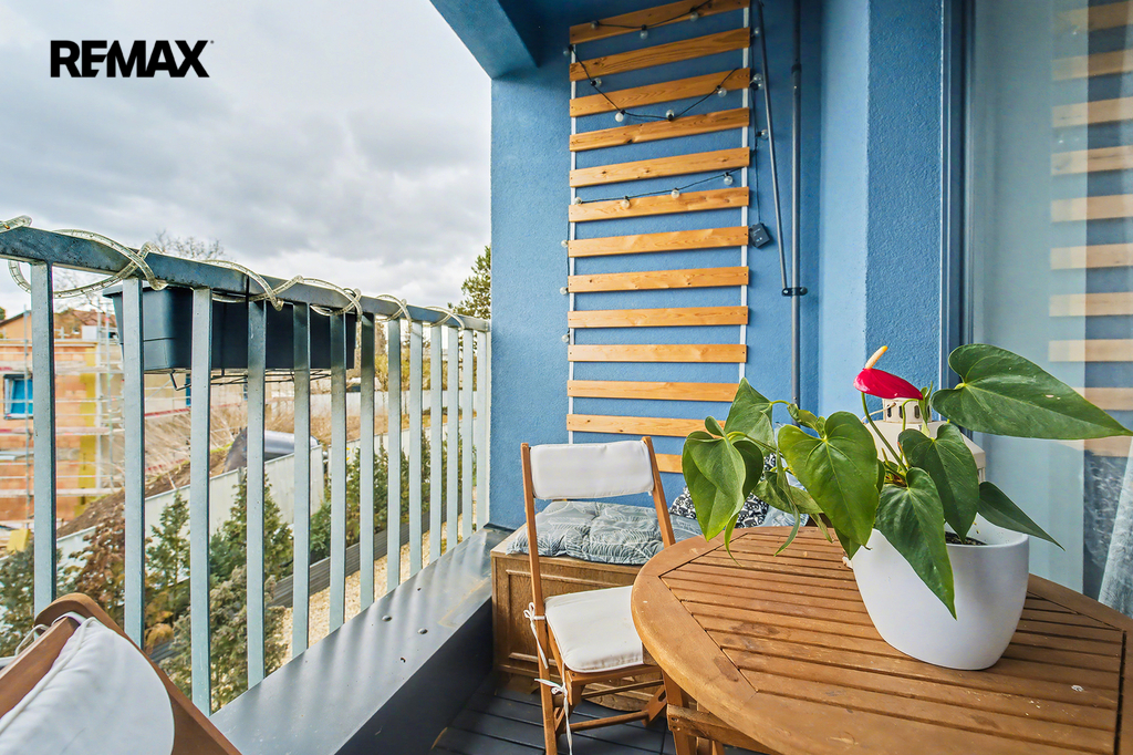 • Obývací pokoj je orientován na východ; z obývacího pokoje je vstup na praktickou lodžii (3 m²), kde můžete posedět u kávy.