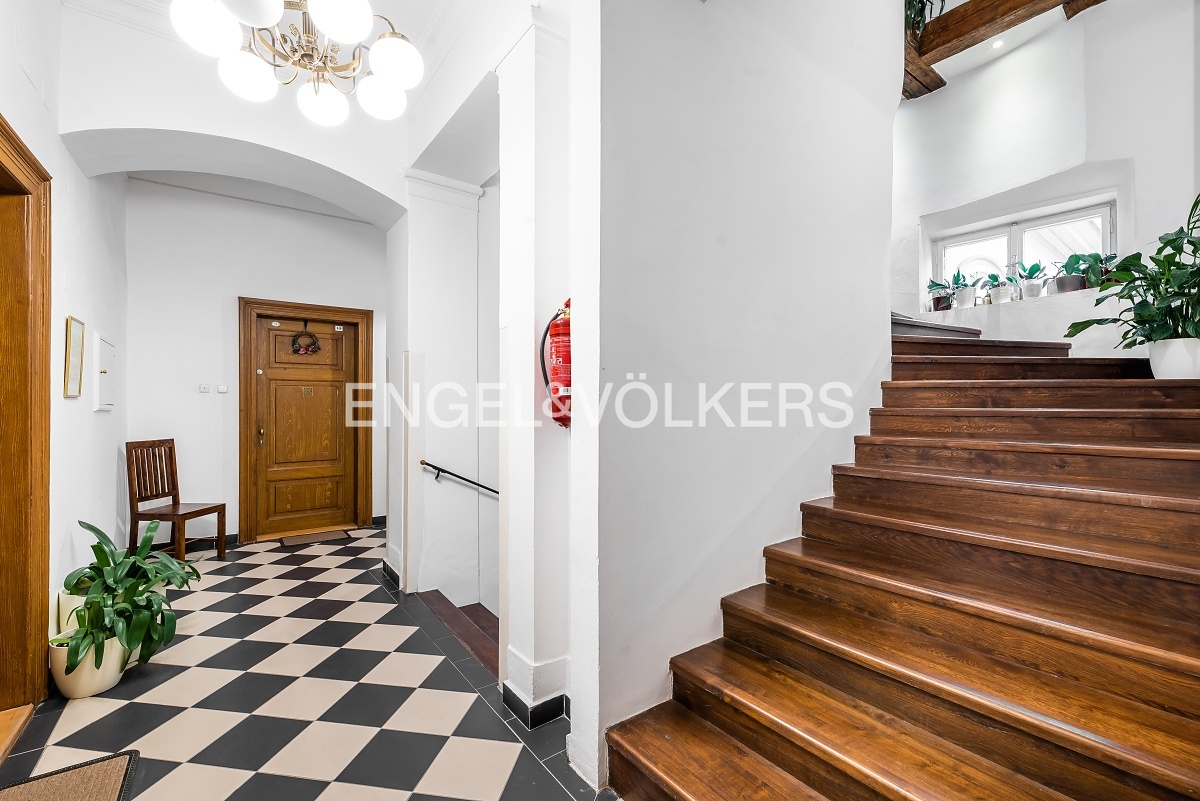 Byt se pronajímá kompletně zařízen nábytkem. Skvělým bonusem je romantická společná zahrada ve vnitrobloku budovy. Nájemníci mají možnost využití sauny.