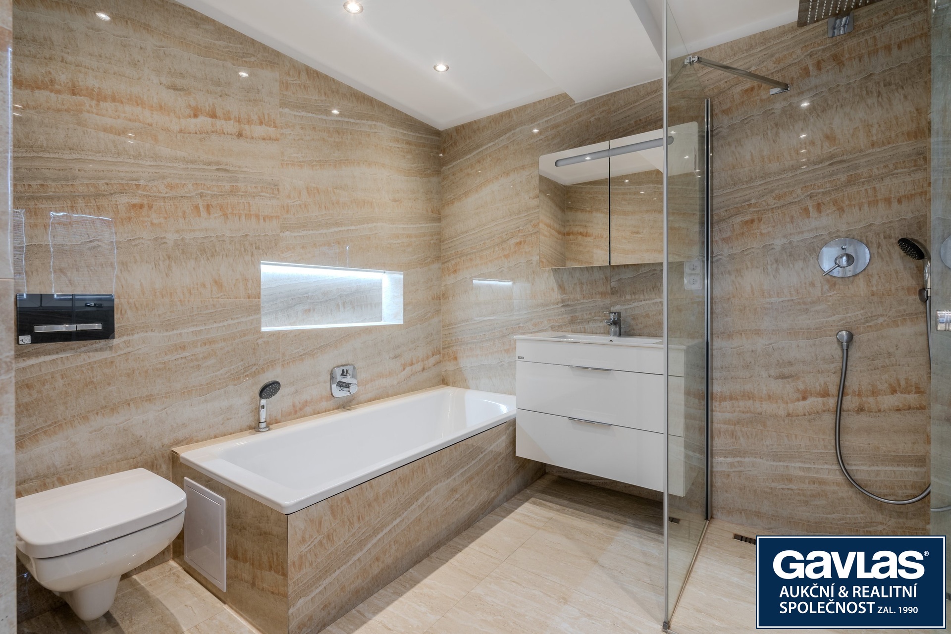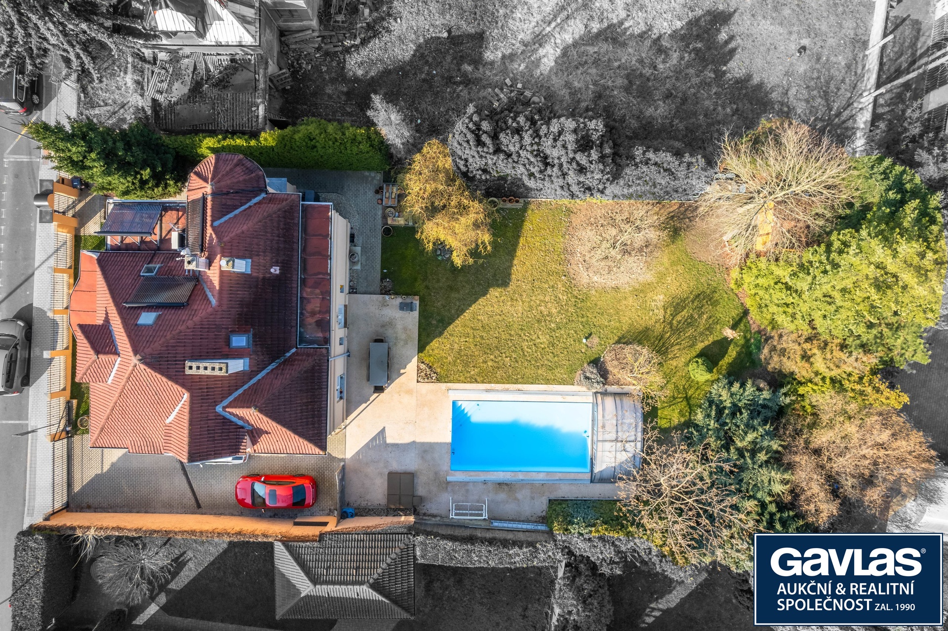 Velkoryse řešená vila nabízí komfortní dispozici o osmi obytných místnostech, doplněnou o dvě kuchyně, dvě koupelny, tři toalety a suterénní prostory.