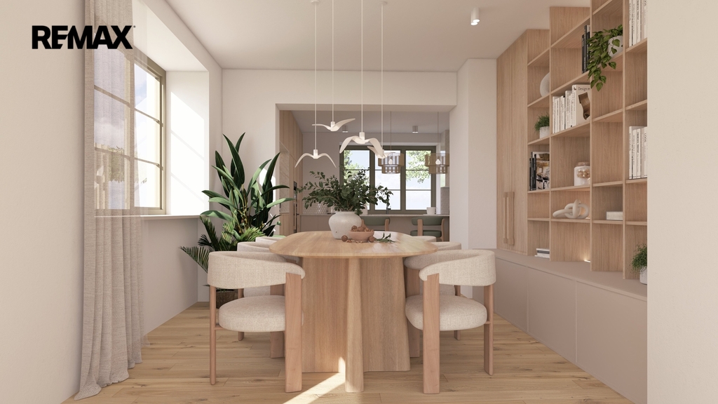 1. NP: prostorná kuchyň, jídelna, obývací pokoj, toaleta a technická místnost