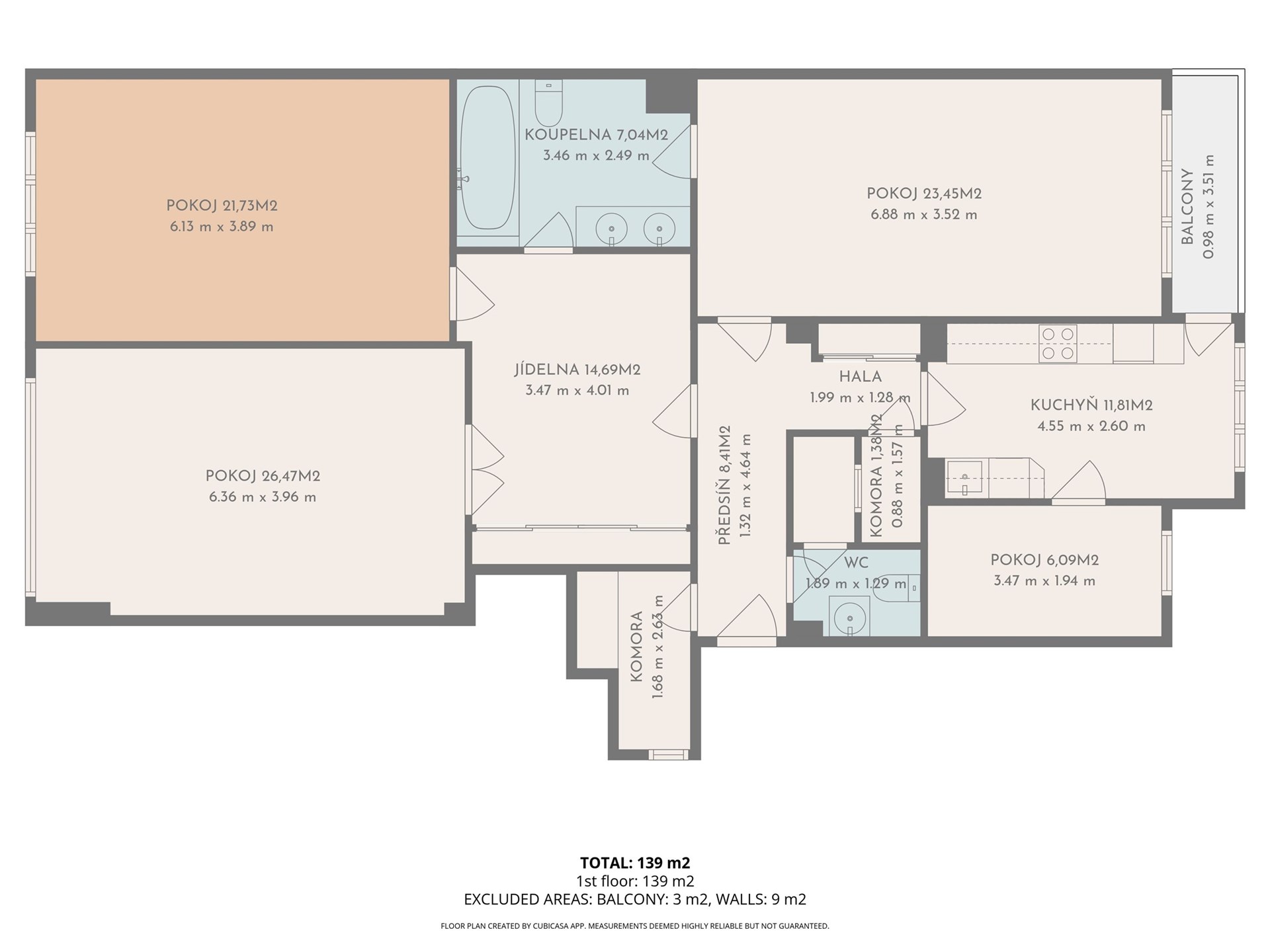 | Dispozice/podlahová plocha: | 4+1/121 m² |