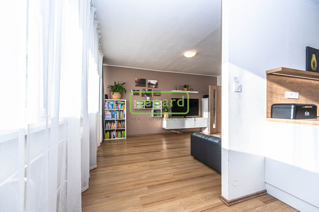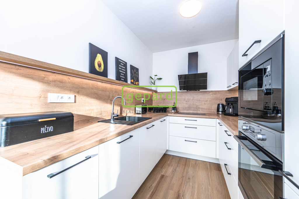 • Prostorný obývací pokoj propojený s moderní kuchyní do tvaru U