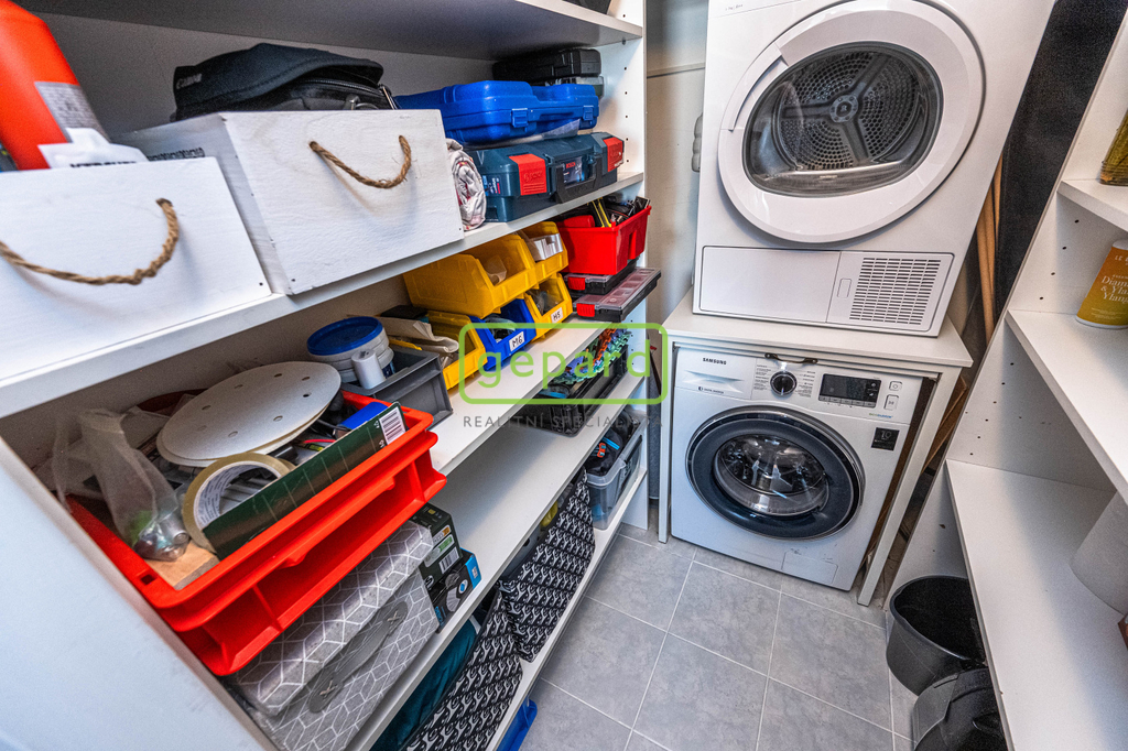 • Velká šatna/komora s nadstandardním úložným prostorem, pračkou a sušičkou