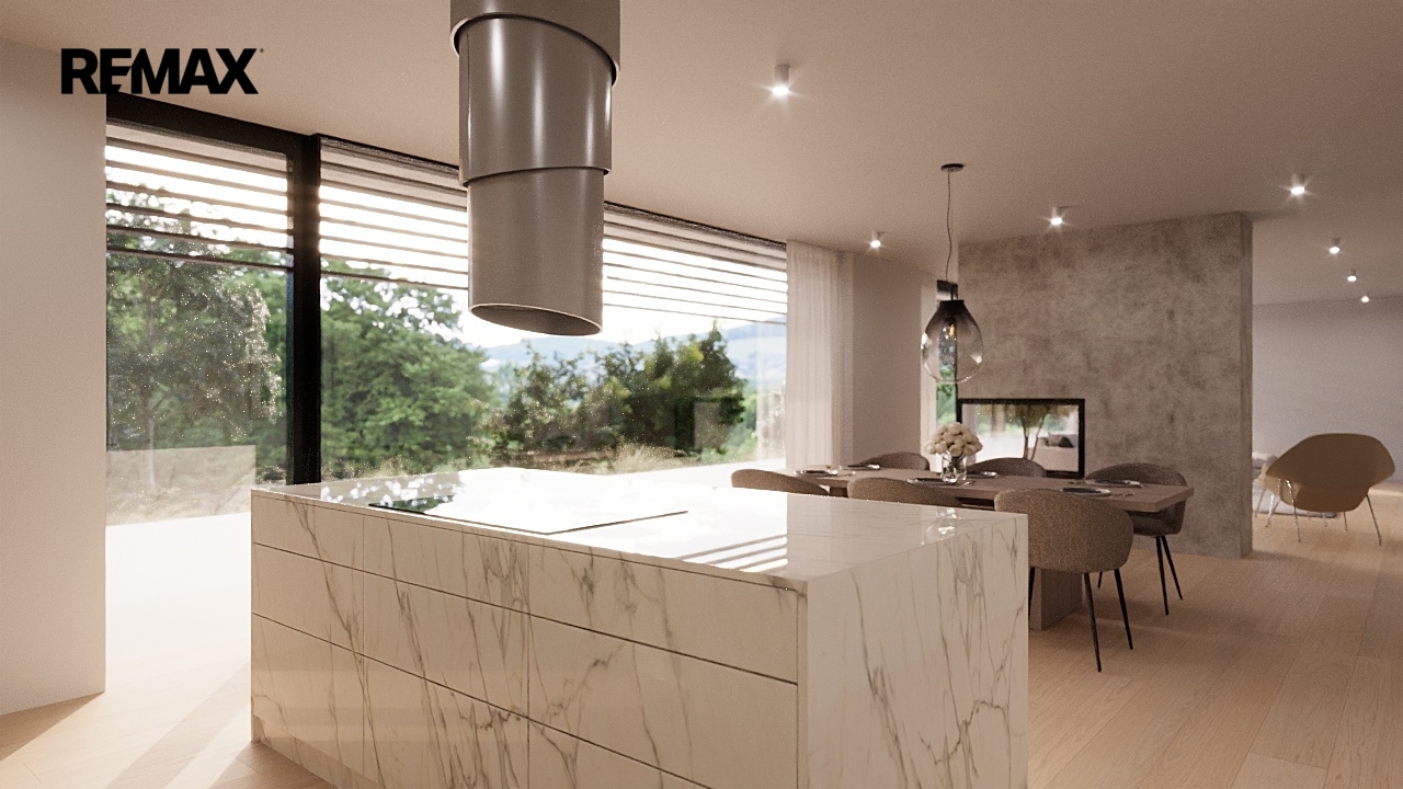 Součástí nabídky je projekt moderní solitérní vily s plochou střechou, která je navržena jako komfortní rodinné bydlení s důrazem na prostor, světlo a soukromí. Vila má tři podlaží (1. podzemní a 2 nadzemní) a celkovou podlahovou plochu cca 303 m². Dispozičně nabízí tři prostorné ložnice, dvě koupelny, velkorysý obývací prostor s kuchyňským a jídelním koutem a přímým vstupem na rozlehlou terasu.