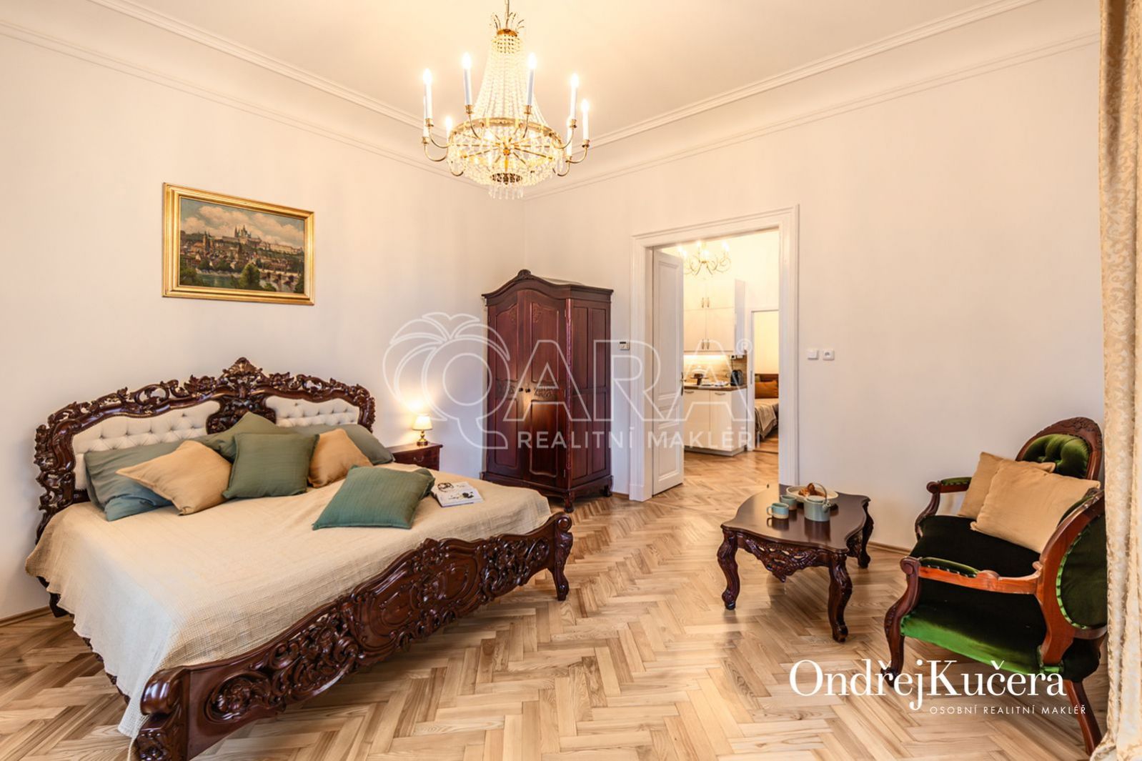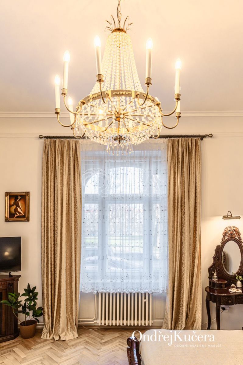 Součástí prodeje může být i kompletní vybavení včetně historického nábytku, což umožňuje okamžité užívání bez dalších investic. K bytu také náleží sklep o velikosti cca 2,5 m a společná chodba pouze pro dva byty.
