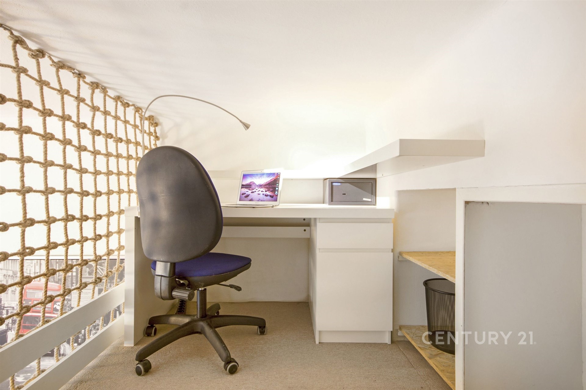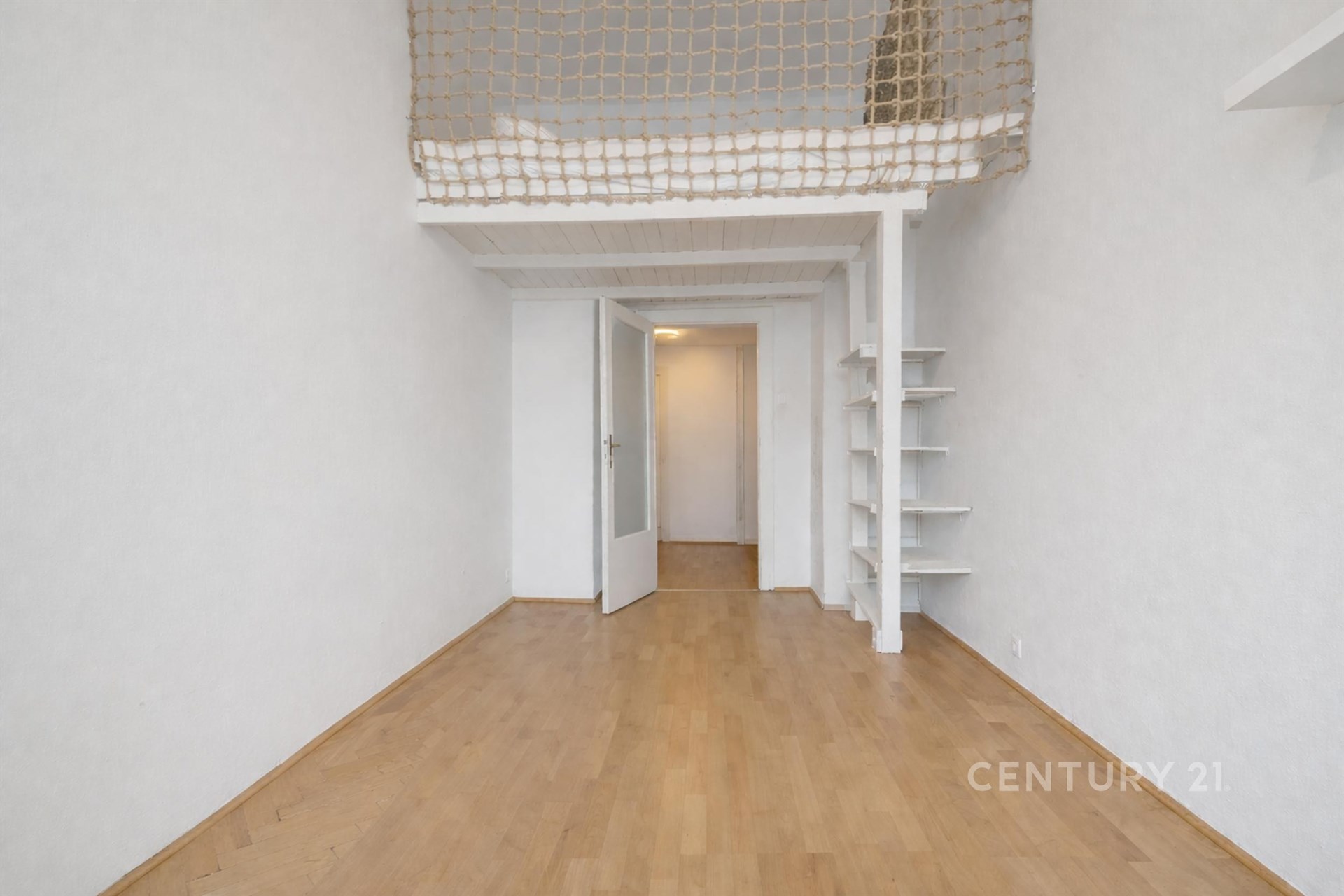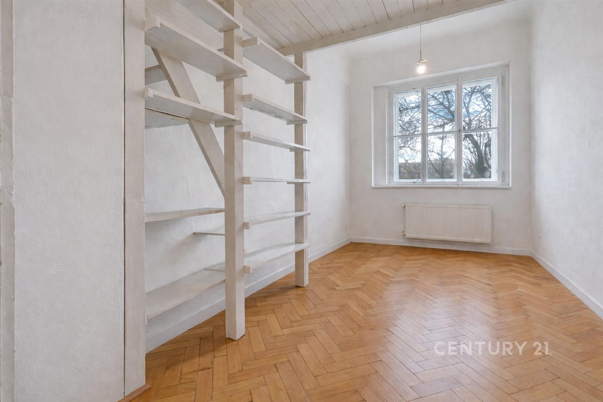 Dispozice bytu byla původně řešena jako 3+kk, v současnosti je upravena na 2+kk, přičemž návrat k původní variantě je možný. Interiér nabízí vysoké stropy, velká dřevěná okna s dostatkem denního světla a dvě samostatná spací patra, která efektivně zvyšují využitelnost prostoru. Vytápění zajišťuje plynový kotel, praktickým benefitem jsou také velké vestavěné skříně v chodbě.