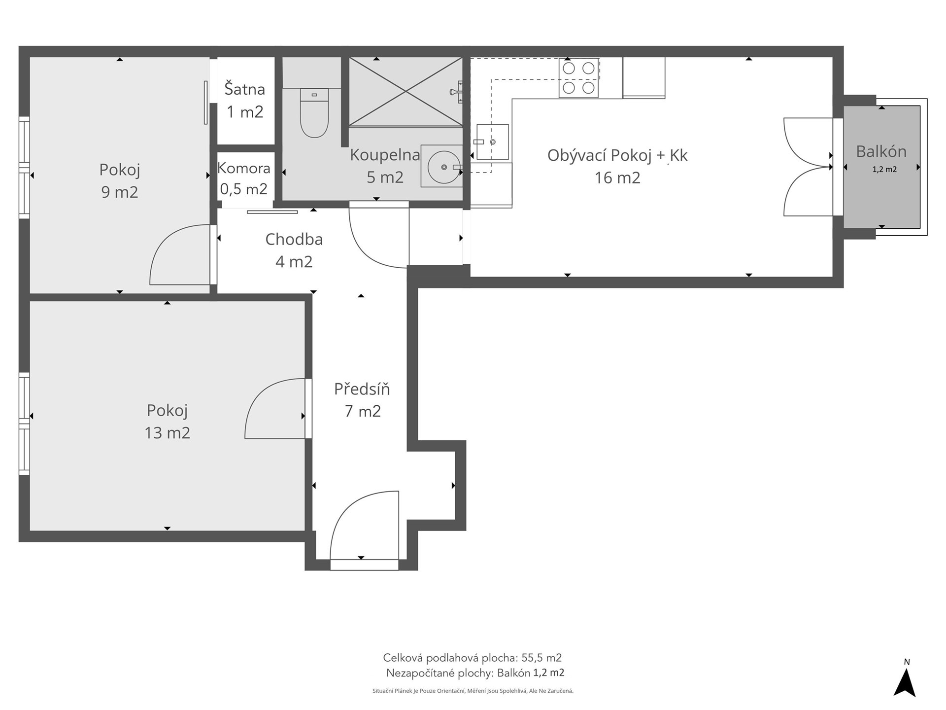 | Dispozice/podlahová plocha: | 3+kk/58 m² |