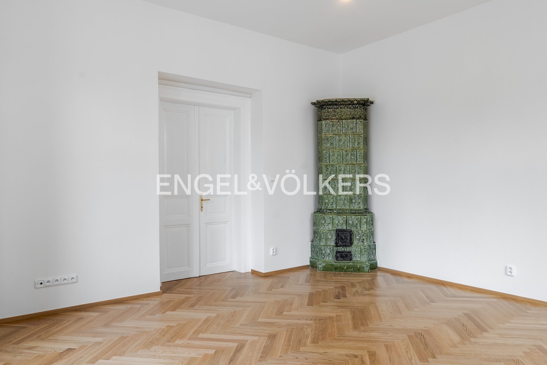Dominantou bytu je rohový obývací pokoj s původními kachlovými kamny a vysokými okny (cca 2,5 m), která zajišťují dostatek světla. Dispozici tvoří samostatná kuchyně, obývací pokoj, ložnice, dále prostorná koupelna se sprchovým koutem a toaletou a další samostatná toaleta. K dispozici je také praktická komora. Vytápění je řešeno vlastním plynovým kotlem.