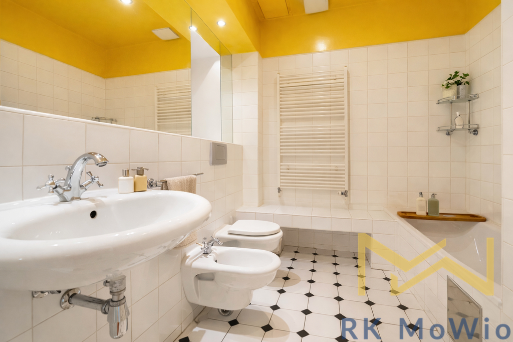 Půdorys bytové jednotky disponuje vstupní halou, prostorným obývacím pokojem s arkýřem a vstupem na balkón, samostatnou kuchyní, jídelnou se vstupem na druhý balkón a do komory, třemi ložnicemi, koupelnou (vana, umyvadlo, toaleta, bidet) a samostatnou toaletou. Vybavení bytu: kuchyňská linka (včetně sklokeramické varné desky, elektrické trouby, lednice s mrazákem a myčky), pračka, sušička, historické architektonické prvky včetně stropní malby, vysoké stropy a kvalitní materiály odpovídající prestižní adrese.
