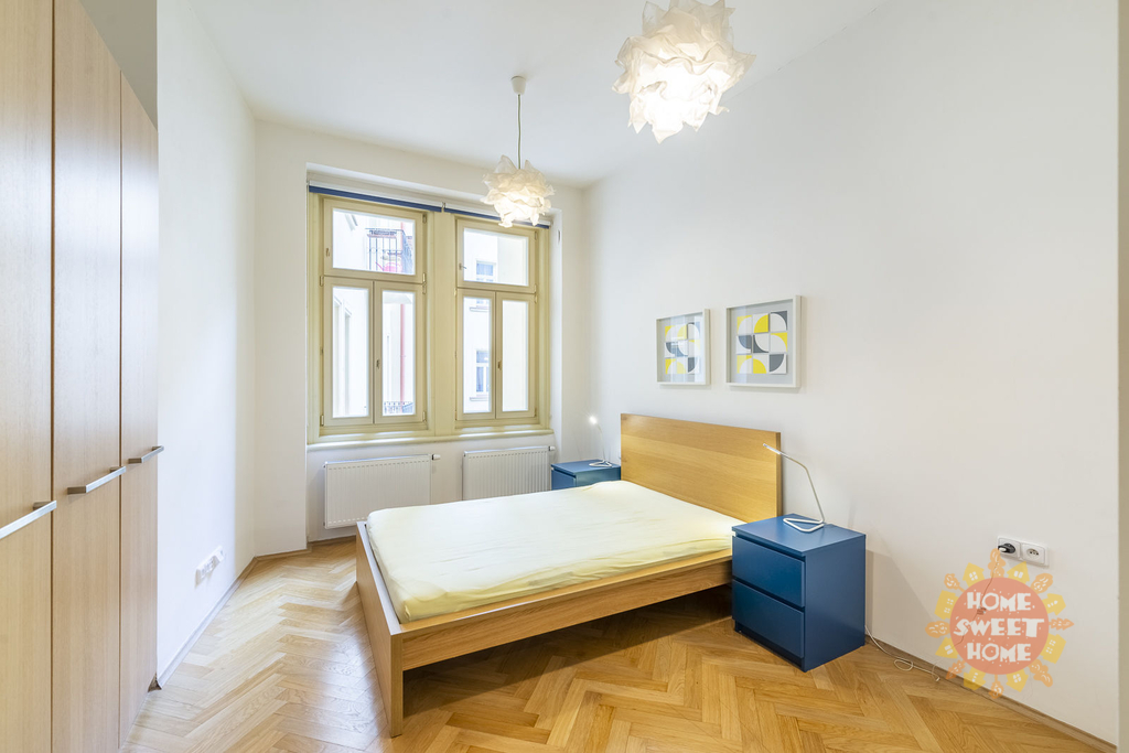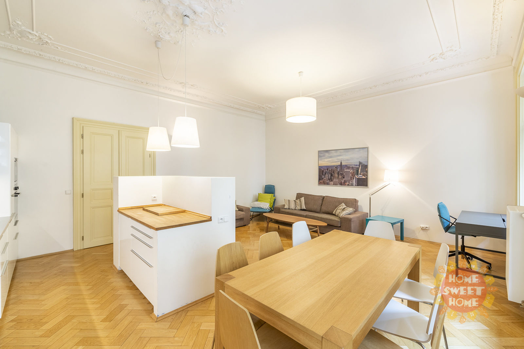 Světlý zařízený prostorný byt 3+kk k pronájmu, 108 m2, balkon, Praha 1- Nové Město, Soukenická ulice
