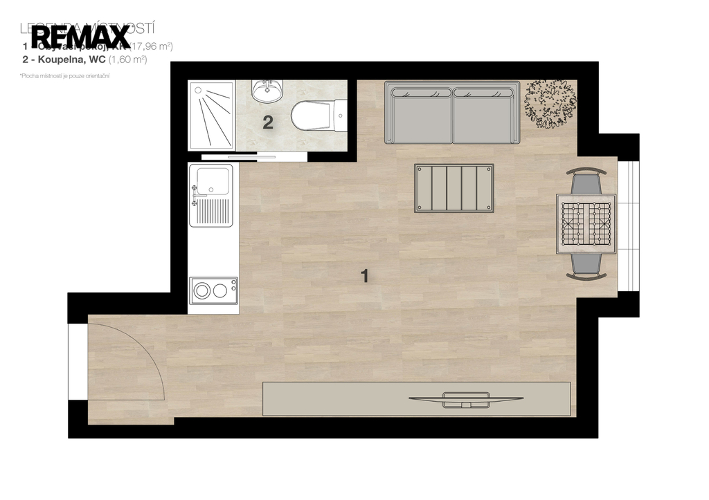 | Dispozice/podlahová plocha: | 1+kk/23 m² |