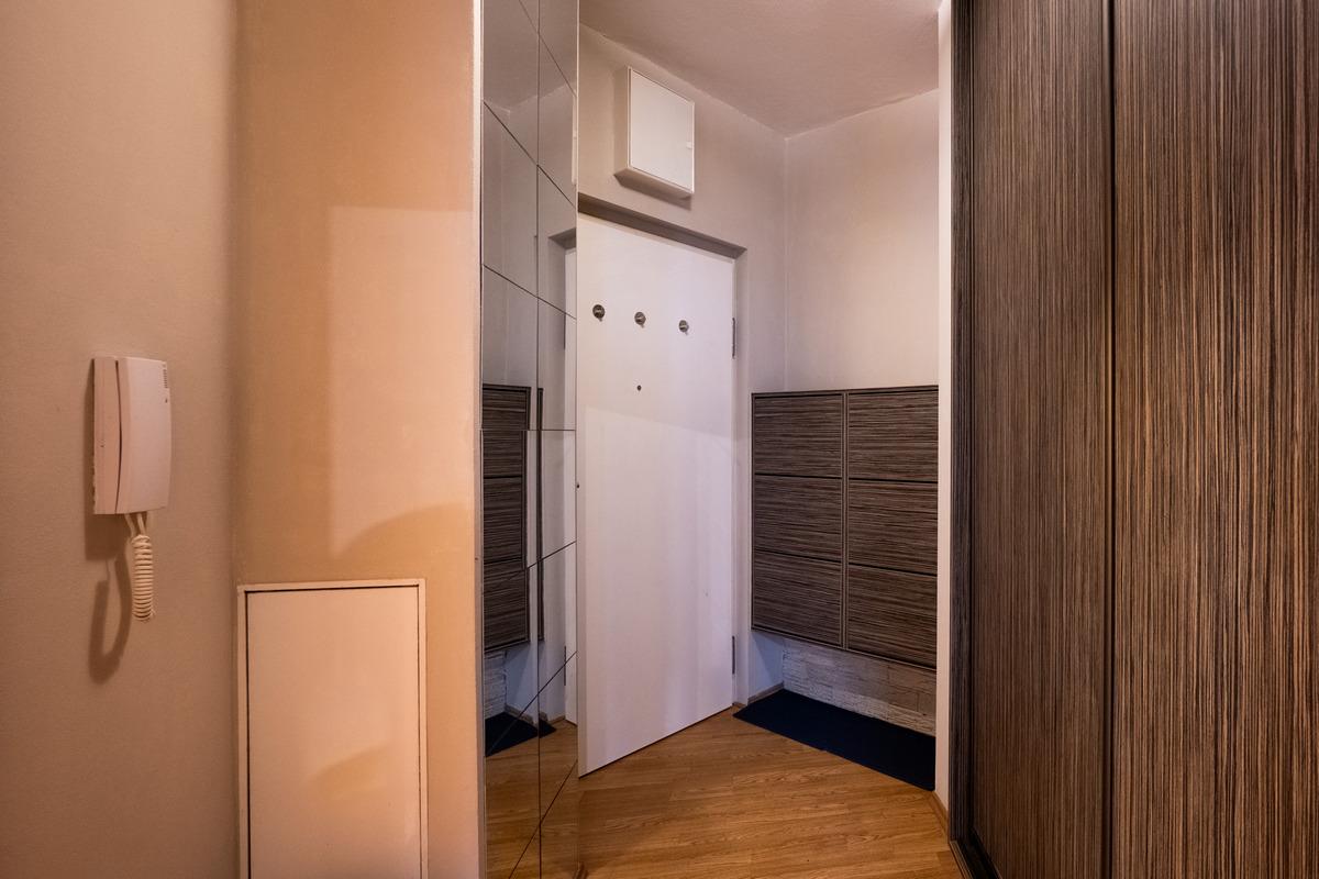 Byt je velmi zdařile designově proveden, vybaven kuchyňskou linkou se zabudovanými spotřebiči, vestavěnou skříní v předsíni a biokrbem a vestavěnou postelí v pokoji. Okna směřují na terasu a jsou orientována na západní stranu.