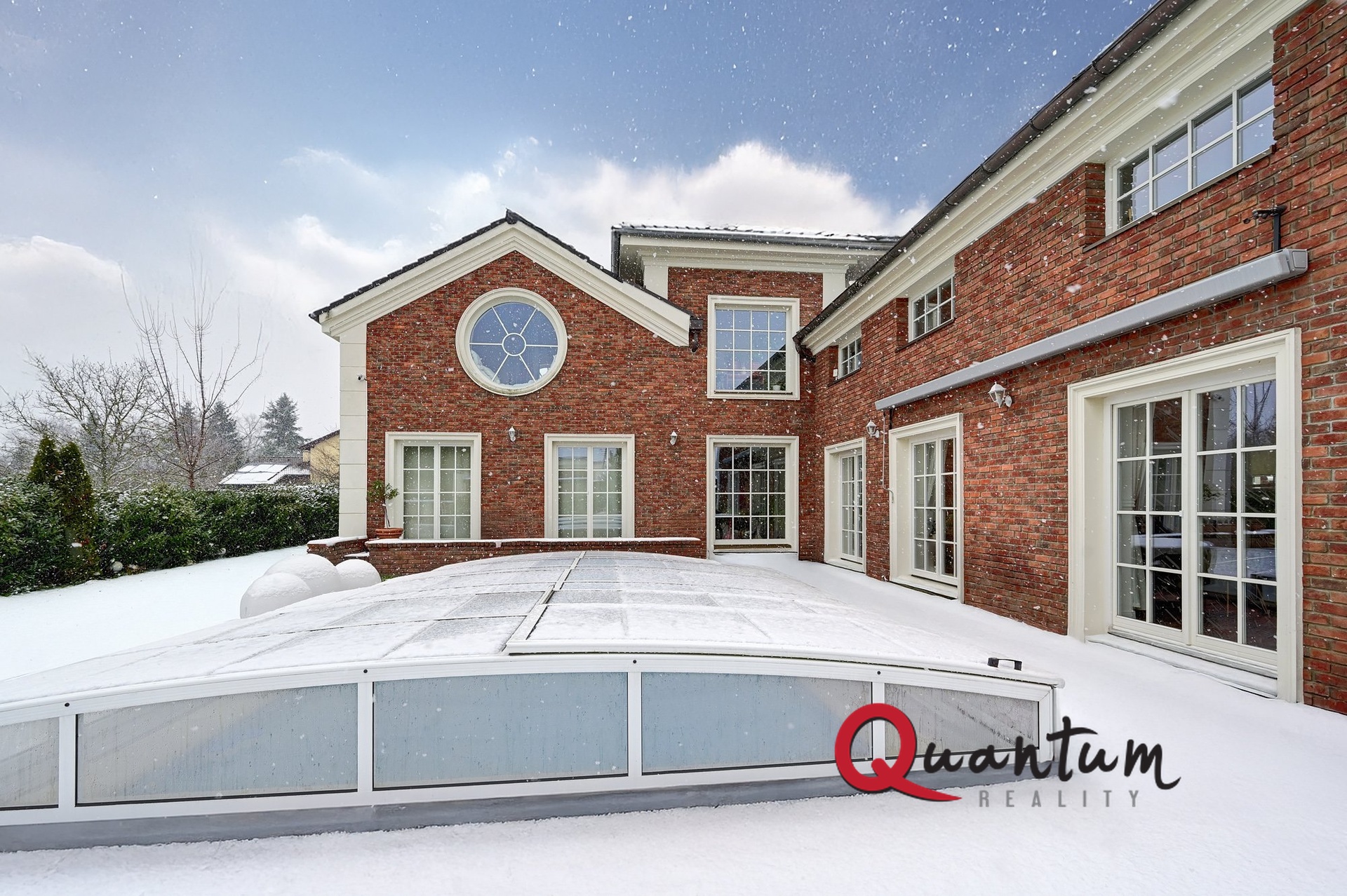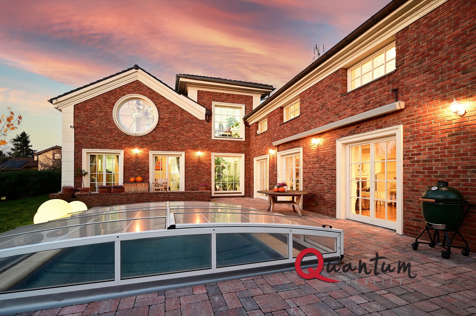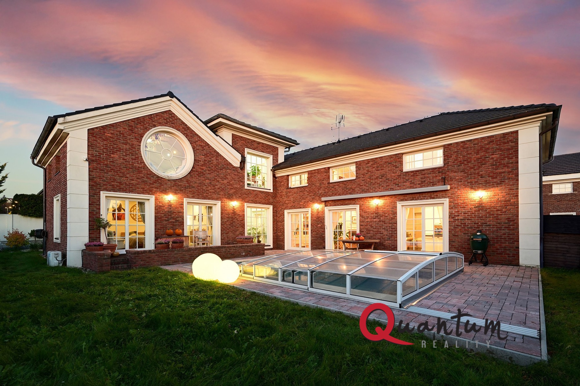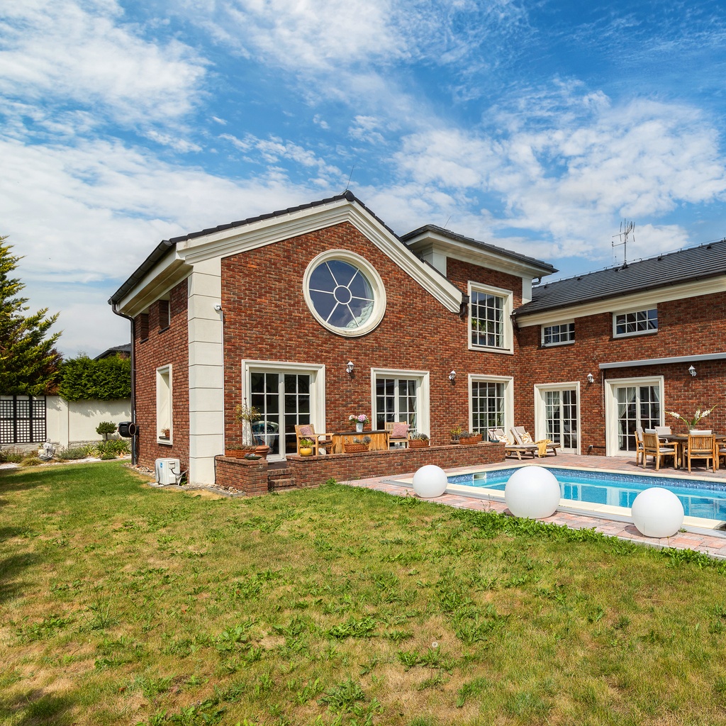 Kvalitní materiály a stylové provedení – fasáda v anglickém stylu, elegantní detaily a propracovaný interiér, který zachovává styl domu.